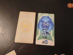Puis, une autre fourberie peut s’en suivre, avec EZ qui permet de chiper une carte à un voisin, ou le Golem pour inverser l’ordre des récompenses entre le 1er et le 2nd… D’où l’importance de remporter des égalités avec le Mage de Lumière.