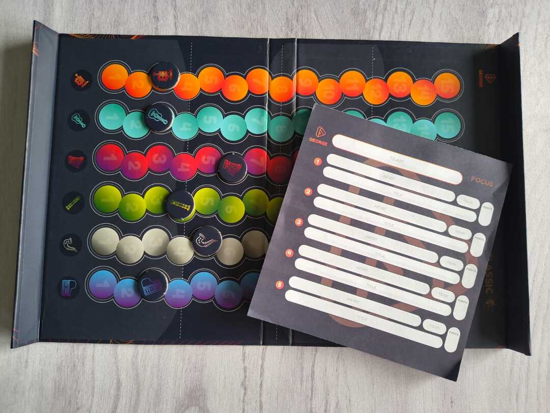 On retrouve les sensations de jeu d’un blindtest et la magie fonctionne aussi parce que George s’appuie sur un catalogue de chansons impressionnant ! Encore mieux, l’application sur laquelle le jeu se repose offre des playlists personnalisées et triées par genre de musique, par décennie, ce qui peut aider les participants à ne pas errer dans l’inconnu. Cela permet de transformer le jeu en véritable jeu de rapidité. Ce qui est agréable avec un jeu musical, c’est que ça laisse la nostalgie s’immiscer dans les discussions, le côté jovial qui ajoute des petites chansonettes et des souvenirs. Et le mode RUSH est LE mode qui permet de vivre ces sentiments exaltants.