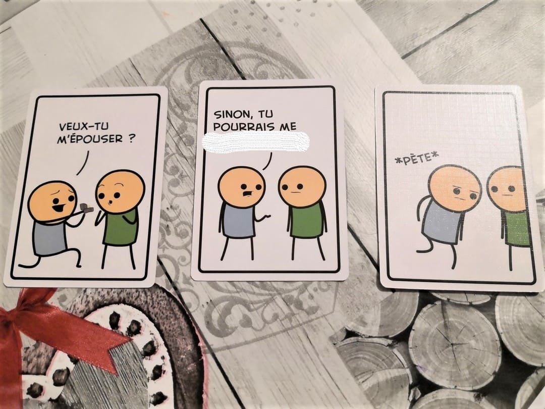 J’ai joué à Joking Hazard à quatre joueurs. Forcément, plus on est, plus il y aura de propositions loufoques.