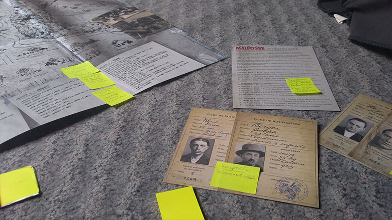 Ainsi, comme expliqué plus haut, il faudra dans un premier temps visionner le documentaire de 52 minutes, qui introduit l’affaire et tous les tenants et aboutissants. Sans trop en dévoiler, nous découvrons donc que l’enquête commencée en 1949 n’a jamais connue de résolution, mais a vu les suspects se multiplier au fil de l’enquête. Les joueurs devront donc suivre ce documentaire en réfléchissant sur les divers éléments qui se présenteront à eux. La carte permet de mieux apprécier les événements et les multiples documents permettent de découvrir de nouveaux indices. Une fois le documentaire vu et les différents documents étudiés, les joueurs pourront alors déterminer qui est l’auteur de ces crimes en regardant les fiches signalétiques des suspects. Une fois que les joueurs sont certains de connaitre le ou les assassins, il est possible d’aller sur le site du jeu pour faire valider son choix et peut-être remporter 10 000€ pour les plus rapides. Si la boîte de Malfosse 1949 indique 4h de jeu, cela peut aller plus loin, notamment pour les plus acharnés qui continueront de penser à l’enquête une fois la boîte refermée…