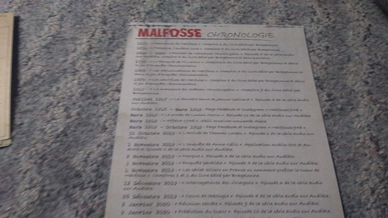 Malfosse 1949 se présente donc comme une enquête interactive, qui laissera aux joueurs tout le luxe de la réflexion. L’objectif est de découvrir l’auteur d’une série de meurtres sordides dans un petit village de France, Malfosse. Pour résoudre cette enquête, les joueurs disposent de la carte de la ville de Malfosse, des fiches signalétiques des différents suspects de l’affaire, ainsi que divers documents contenant des indices et un documentaire de 52 minutes permettant de découvrir l’affaire. Afin de mener à bien leur enquête, les joueurs pourront aussi passer par d’autres biais, comme un livre édité par Bragelonne, une série audio ou encore des posts Facebook et Instagram. Trois affaires s’entremêlent : l’une en 1948, l’une en 1949 et une autre en 2019. Pour notre part, nous nous pencherons sur l’affaire de 1949.