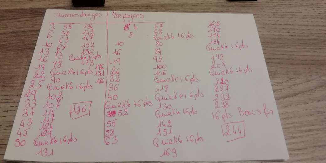 Pour compter les points, c’est facile aussi : vous comptez chaque tuile qui compose votre ligne. Par exemple, si vous posez une étoile verte dans une ligne où il y a déjà 3 étoiles mais qu’en même temps votre étoile verte est collée à un rond vert, cela vous fera 6 points. Vous comptez la ligne d’étoile ainsi que la ligne de couleur. Vous comprenez donc que lorsque vous faites un Qwirkle, vous gagnez au minimum 12 points ! C’est tout bénéf’ !
