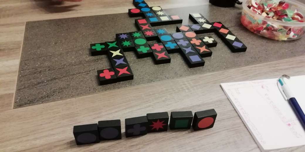 Le Qwirkle, c’est plus simple à jouer qu’à prononcer (oui je l’ai déjà dit, mais j’aime bien). En début de jeu, chaque joueur pioche 6 tuiles qu’il pose devant lui de façon à ce que ses adversaires ne puissent pas les voir. Le joueur qui peut poser le plus de tuiles commence la partie.