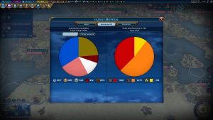 Les faveurs diplomatiques, elles, sont une ressource un peu plus traditionnelle dans le sens où celle-ci s’accumule chaque tour. Ces faveurs diplomatiques peuvent servir à être échangées avec d’autres dirigeants, mais servent avant tout à acheter des votes lors du congrès mondial, une nouvelle fonctionnalité rajoutée par Gathering Storm. Le congrès vous permet de voter pour des résolutions diverses et variées (augmenter le rendement des voies commerciales de tel ou tel joueur, réduire la production d’unités militaires d’un autre…) mais introduit également un système de concours mondiaux sur des thèmes divers là aussi (jeux mondiaux, prix Nobel…). Cette partie rend le retour de la victoire diplomatique plus qu’intéressante au vu des outils mis à disposition du joueur pour influer sur les autres dirigeants. On regrettera juste deux points à ce nouveau système : l’activation automatique du congrès au moyen-âge et ce, peu importe si vous n’avez pas encore découvert les autres membres sur la carte, ainsi que l’organisation du prix Nobel, conditionnée à la présence de la Suède dans la partie.