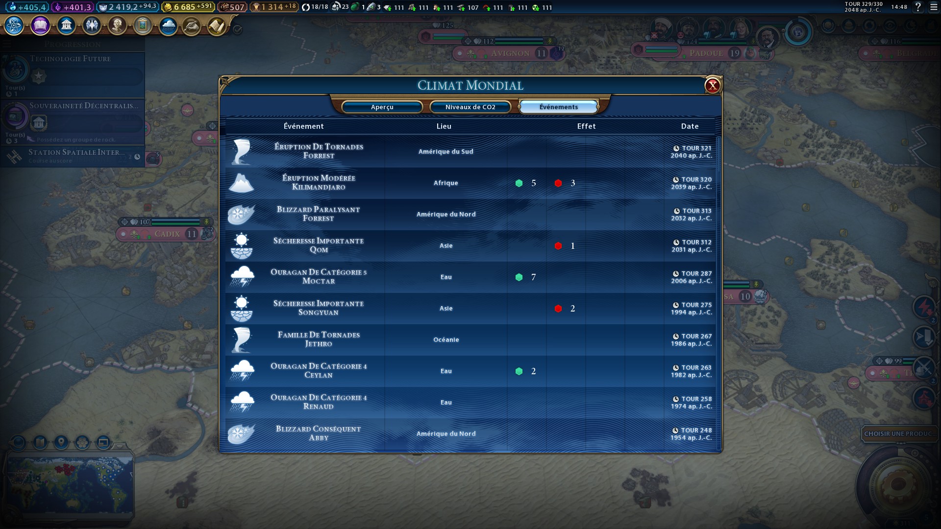 Impossible de clore ce test sans parler de l’une des fonctions majeures apportée par Gathering Storm : les catastrophes naturelles. Celles-ci, réglables en début de partie, permettent de rajouter un petit côté SimCity à vos parties, l’aspect gestion en plus. Il sera ainsi possible d’observer la formation d’ouragans, de crues, ou encore d’éruptions volcaniques à certains endroits de la carte. Certaines catastrophes pourront même être exploitées, à l’instar des volcans dont les éruptions augmentent la fertilité des zones avoisinantes. Plutôt anecdotiques en réglage standard, il faudra en augmenter la fréquence lors de la création d’une partie pour espérer un véritable impact des catastrophes, spécialement sur de grandes cartes.