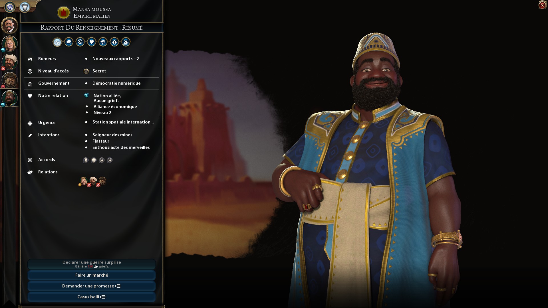 L’une des premières choses que l’on remarque en démarrant une nouvelle partie avec Gathering Storm activé, c’est sans conteste la semi-refonte du système diplomatique. Celui-ci est désormais plus clair et plus cohérent dans vos relations avec l’IA, et incorpore désormais des « griefs » et des « faveurs diplomatiques ».
