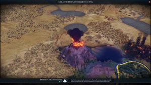 Le mode Apocalypse, qui nécessite l’extension Gathering Storm pour être utilisée (dépendance à une autre extension qui est d’ailleurs assez critiquable), permet d’ajouter des catastrophes naturelles majeures sur vos cartes. Ce mode de jeu, qui relève plus de l’option à cocher lors de la création de partie, introduit également le Devin, une unité religieuse dotée de charges capable de provoquer des catastrophes naturelles (chez l’adversaire de préférence) mais aussi de sacrifier des unités militaires alliées à un volcan afin de vous protéger de ses colères.