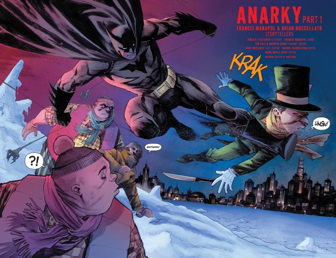 Alors que le détective Harvey Bullock enquête sur la multiplication de symboles anarchiques peints sur les murs de la ville, le Chevalier Noir remonte la piste de cadavres d’enfants sur les docks. Sans le savoir, leurs investigations vont tendre l’une vers l’autre et leur révéler un adversaire commun : Anarky !