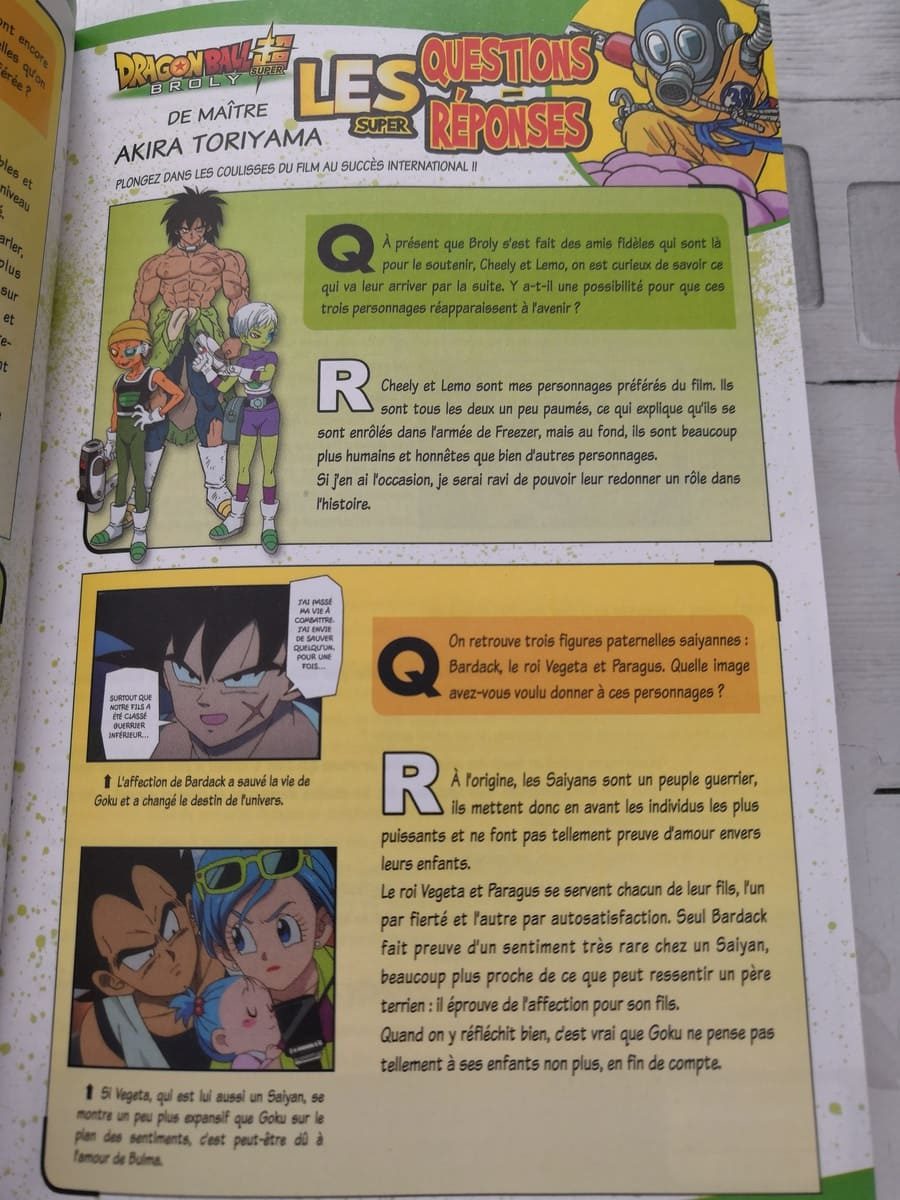 Enfin, si le film a été supervisé par Akira Toriyama, il a été réalisé par Tatsuya Nagamine. On retrouve alors sa « Super Interview » dans les dernières pages de l’anime comics. La vingtaine de questions occupent tout de même quatre pages et la police d’écriture n’est pas des plus grandes. Ce qui demeure un bonus incroyable et plus que bienvenu, la lecture de l’interview a été forte agréable. Pour couronner le tout, nous avons même droit à une session de Questions/Réponses cette fois-ci consacrée à Akira Toriyama. Les sujets de discussion comprennent notamment le thème de la figure paternelle (importante dans Dragon Ball Super Broly), le choix des nouveaux personnages et des petites nouveautés qui sont apparues dans le film et qui ont été appréciées par Akira Toriyama.