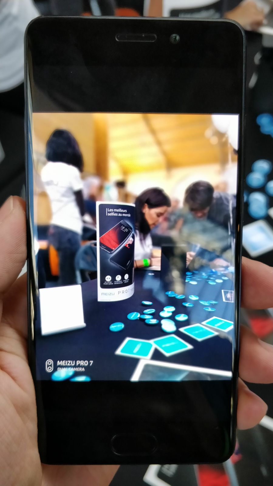 Les grands marques avaient chacune leur stand avec des petites activités pour attirer les visiteurs. Personnellement, je me suis attardé sur le stand LG qui présentait son nouveau smartphone haut de gamme le LG V30. Autant vous dire que ce téléphone est un véritable bijou ! Superbe écran Amoled de 6″ pour un gabarit réduit (taille identique à mon OnePlus 5), objectif photo grand angle de 120° en façade et des specs toujours plus monstrueuses. LG semble avoir tiré les leçons de l’échec commercial de son G6. Toujours du côté téléphonie, les principaux représentants étaient bien présents : Sony et son Xperia XZ1, Honor et ses modèles 7/8/9, Samsung et ses Galaxy S8 et Note 8 ou encore Meizu avec le Pro 7 (qui jouit d’un double écran et double capteur photo au poil). D’autres marques moins présentes sur le marché comme Archos ou Alcatel présentaient aussi leur nouveau flagship. Un aperçu du Meizu Pro 7 plus et de son double capteur photo :