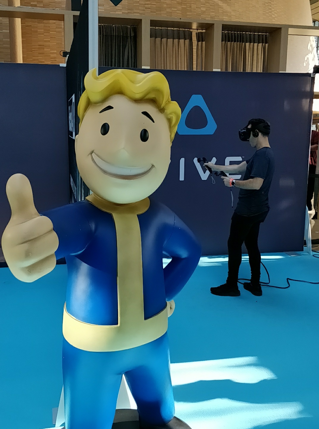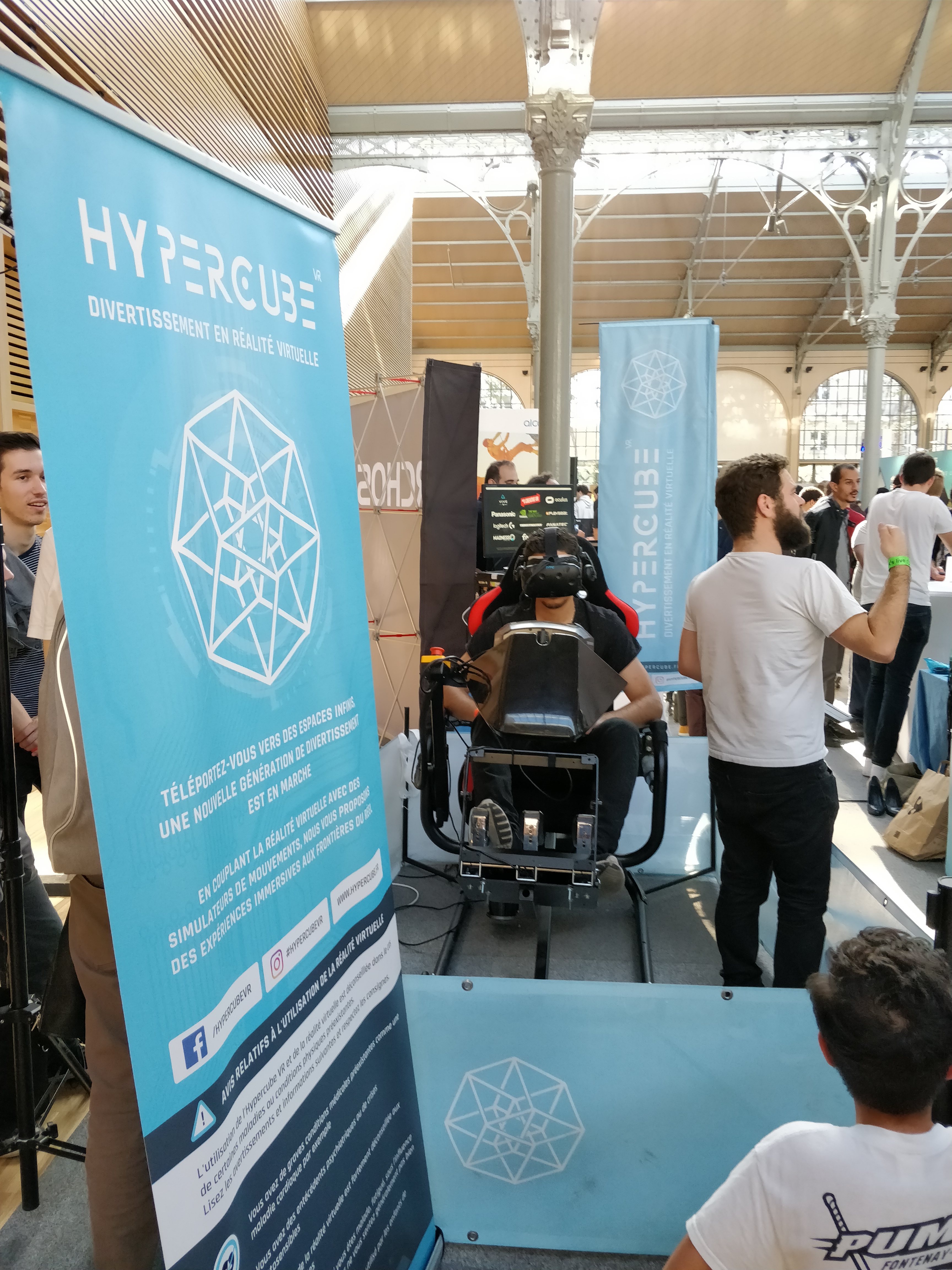 La réalité virtuelle envahissait le salon et difficile de faire deux pas sans voir un nouvel accessoire lié à cette technologie. Je pense notamment à Fallout 4 VR testable avec le HTC Vive ou Samsung et son casque VR avec une simulation de roller coaster. Sur le stand d’Hypercube il était possible de se prendre pour un véritable pilote automobile. Casque VR, siège baquet monté sur vérins, volant et pédalier… Sensations fortes garanties !