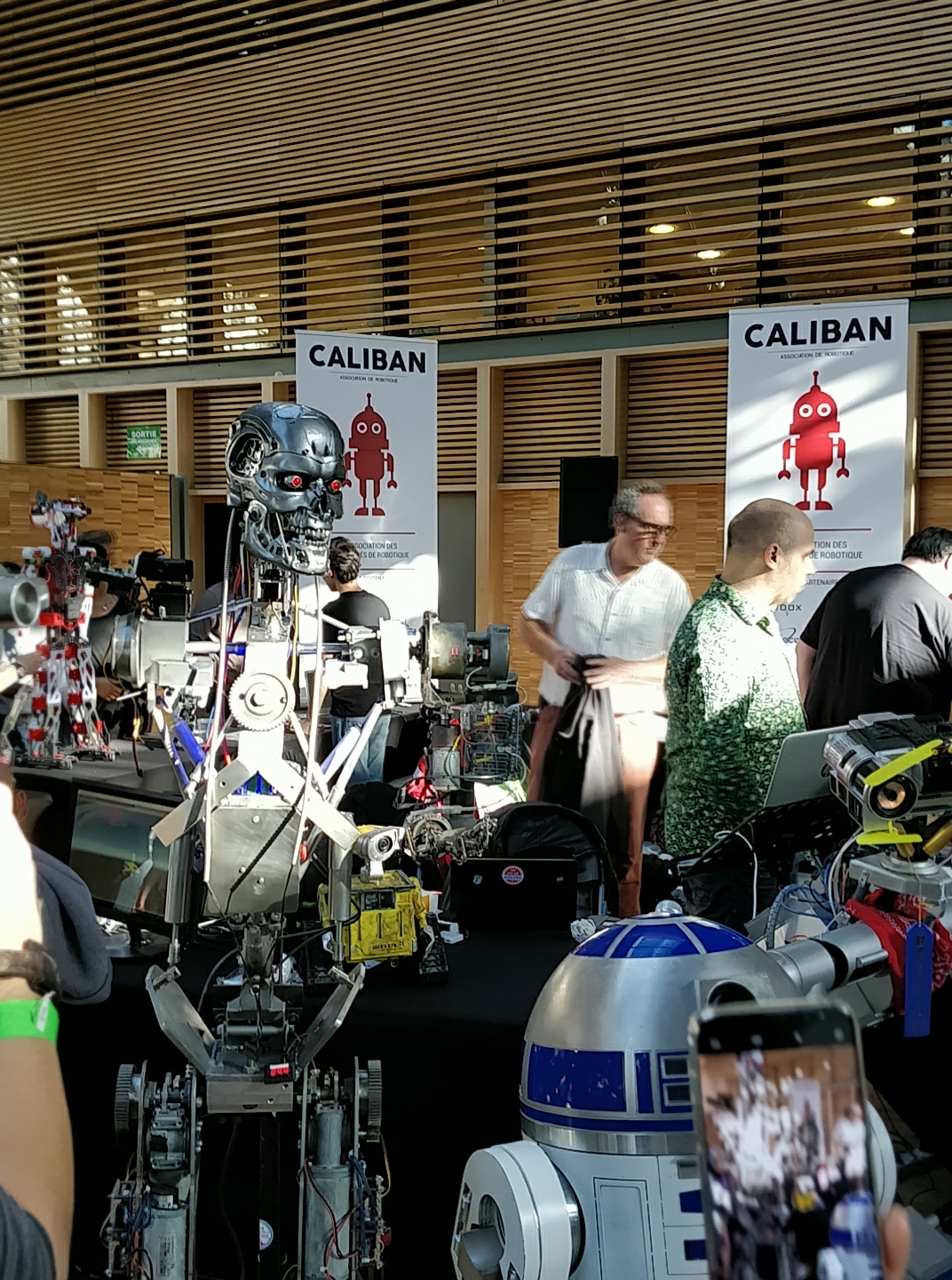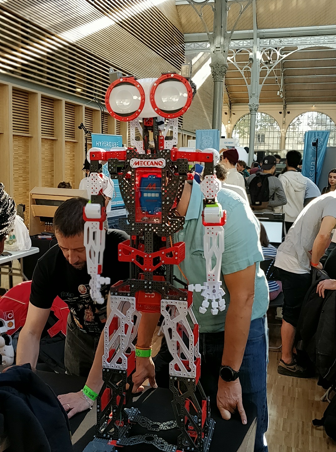 Et même Disney avec sa simulation de Jedi Academy (de quoi vous plonger dans la peau d’un jeune Padawan devant parer des tirs avec son sabre laser). Une bonne transition d’ailleurs car le salon regorgeait d’éléments Star Wars. Que ce soit l’atelier pour apprendre à manier le sabre laser, des modèles réduits des célèbres droïdes télécommandés ou encore l’association des constructeurs de droïdes tailles réelles. L’occasion de faire connaissance avec R2-D2 et BB-8. Il était même possible de faire une partie de morpion sur un écran tactile contre un bras motorisé ! Il y avait aussi un droide construit tout en Meccano… Ça a changé les Meccano depuis mon enfance !