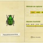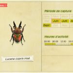 Du côté des nouvelles bestioles qui débarquent au mois de juin, ce n’est pas un, pas deux, mais bien 6 nouveaux insectes que nous pourrons capturer!  Trois d’entre eux sont des insectes volants : Morpho bleu, Luciole et Moustique. Tandis que les trois autres se trouvent sur les troncs des arbres (attention pour le Scarabée Goliath, c’est exclusivement sur les troncs de palmier) : Pseudotorynorrhina, Scarabée Goliath et Lucarne copris irisé. En plus de la galerie suivante, vous pourrez les retrouvez plus en détails dans les onglets ci-dessous, en compagnie de tous les insectes que vous pourrez capturer durant le mois de juin.
