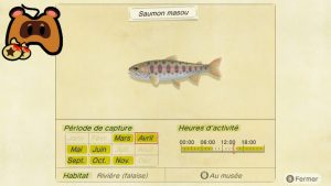 Il est bon de noter que vous devez, pour attraper ces poissons, vous trouver sur le ponton de votre île. A noter que vous pourrez également pécher l’un des poissons de mer en plus de ceux cités ci-dessous.