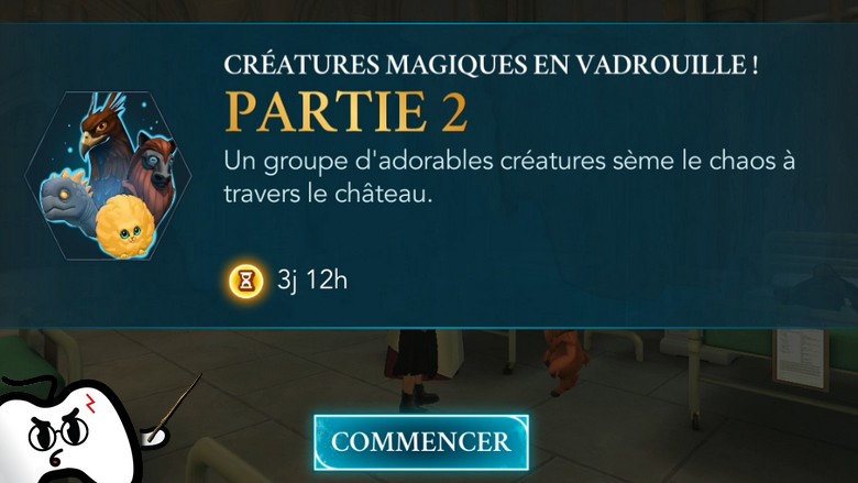 Alors que nous attendons avec impatience les prochains chapitres de l’aventure (ou l’acquisition de carnets rouges pour adopter de nouvelles créatures magiques), c’est une nouvelle quête limitée qui débarque sur nos smartphones. Après la quête pour devenir préfet, celle pour devenir un Animagus, pour l’anniversaire d’ Hagrid, la spéciale Halloween, ou celle qui vous permettez de devenir un membre d’un groupe de rock, c’est maintenant le tour des créatures magiques en vadrouille ! Ce succès, que l’on retrouve dans nos leçons de l’Année 4 a débarqué la nuit du 30 novembre au 1er décembre dans nos parties. Et pour le débloquer, il faudra réaliser la quête dans un temps limité. Attention donc, il faudra vous dépêcher car vous n’aurez que quatre jours pour faire un certain nombre de missions. Comme d’habitude, nous vous proposons un guide avec les temps nécessaires pour finaliser au mieux votre quête.
