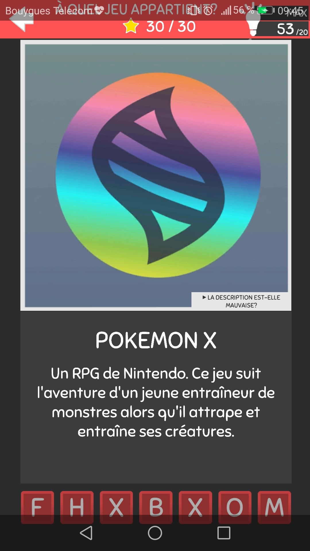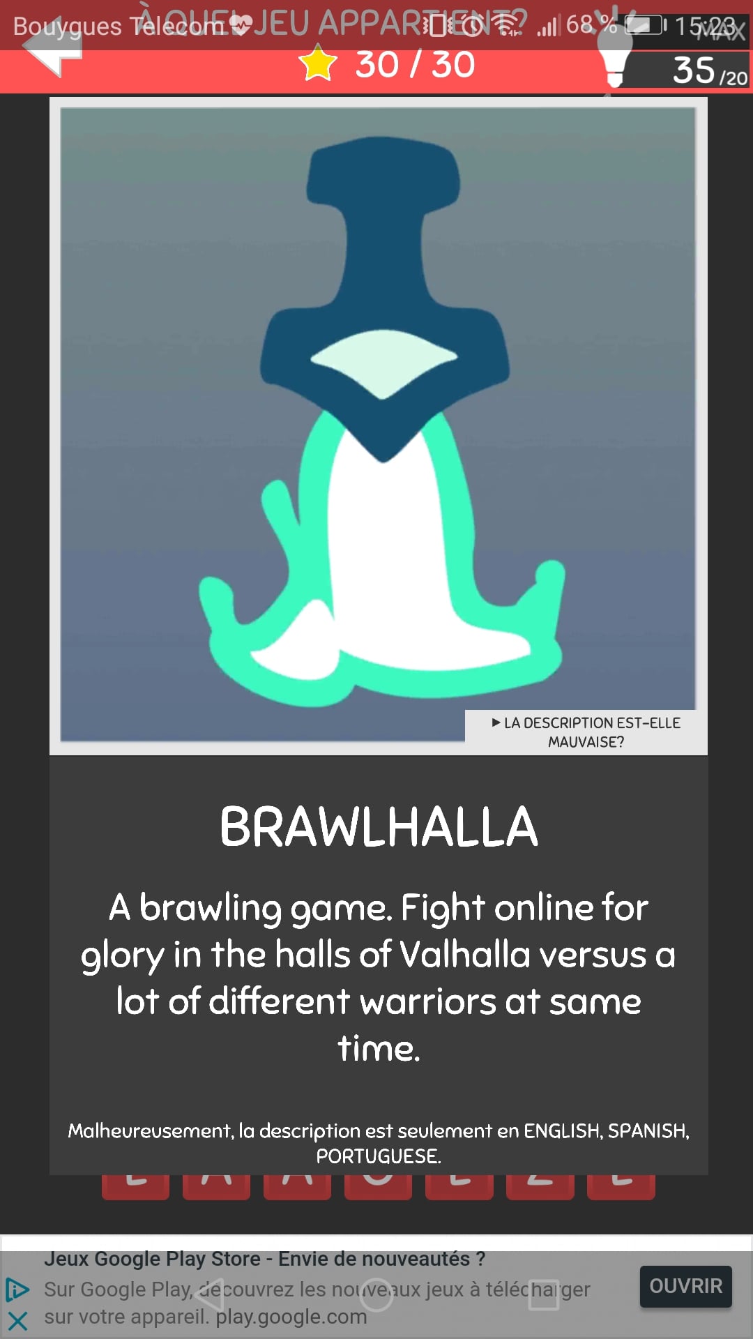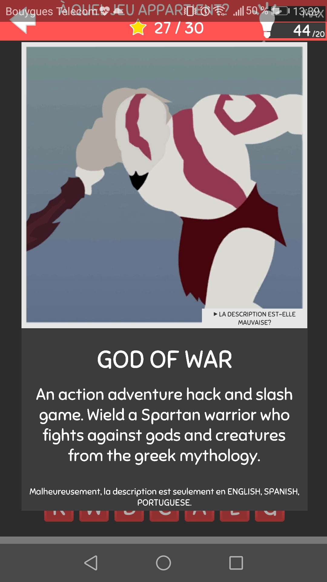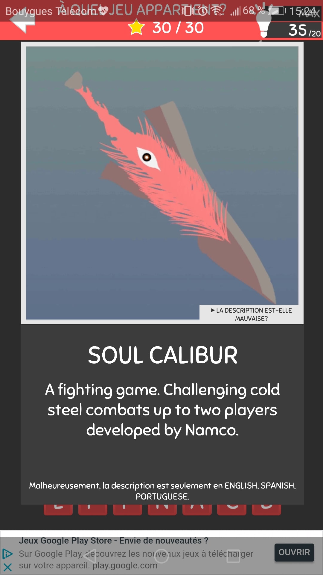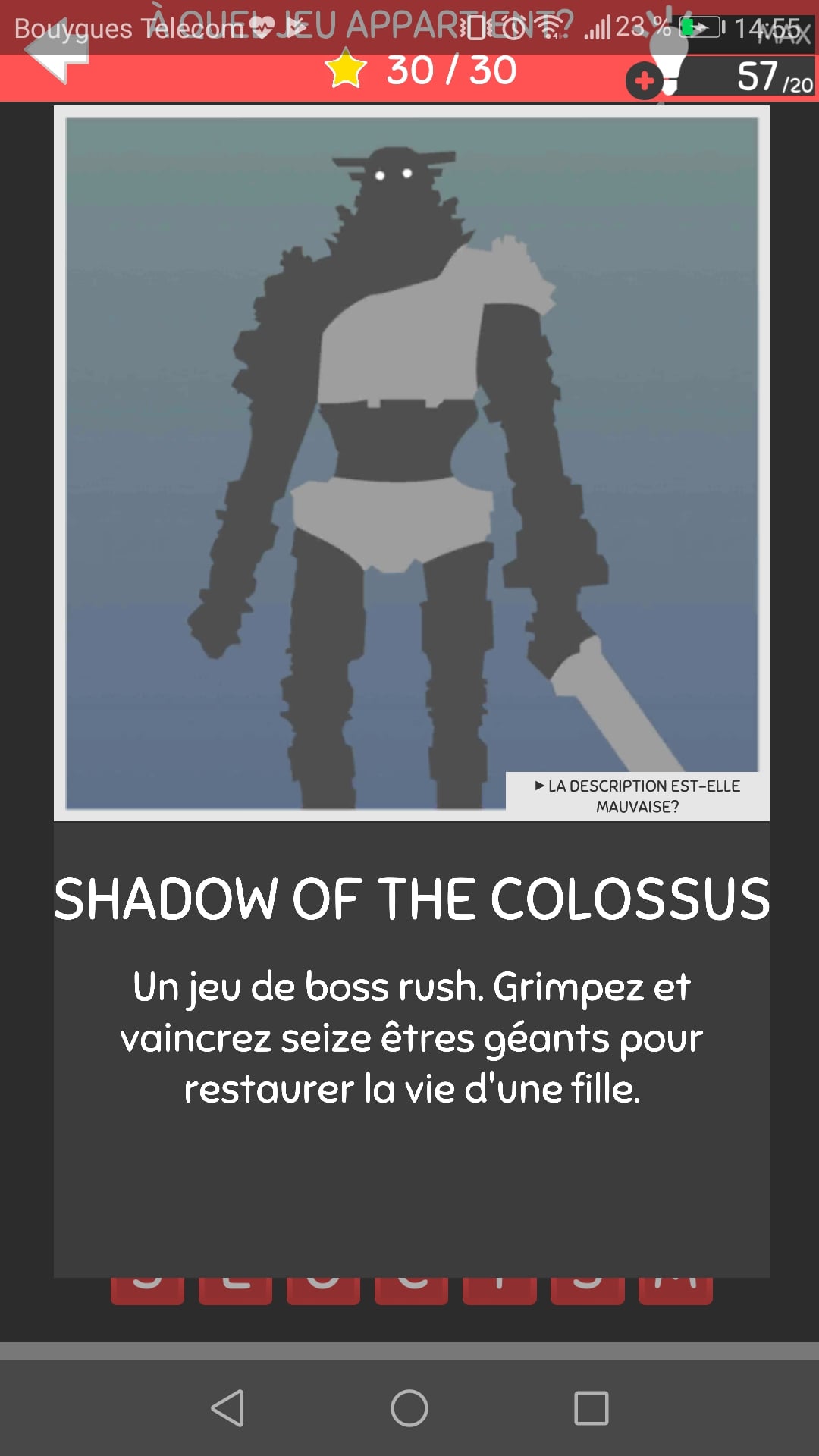 Mega Quiz Gaming est une application qui teste votre culture dite « gaming » à travers des images. Le principe est simple, il existe plusieurs thèmes et chacun comporte une trentaine d’images. Sous celles-ci, vous trouverez des lettres qu’il faudra reconstituer avec pertinence pour retrouver l’intitulé du jeu vidéo. Il est plutôt agréable d’y voir divers dessins ou symboles et presque jamais avec le même pinceau. Pour vous aider, l’application dispose d’un système d’indices que l’on obtient en obtenant des bonnes réponses ou en s’infligeant des dizaines de secondes de pub, ce qui n’est jamais agréable. C’est pourquoi, votre serviteur ici présent a sacrifié de son temps pour partager toutes les réponses du titre, si jamais vous en avez besoin.