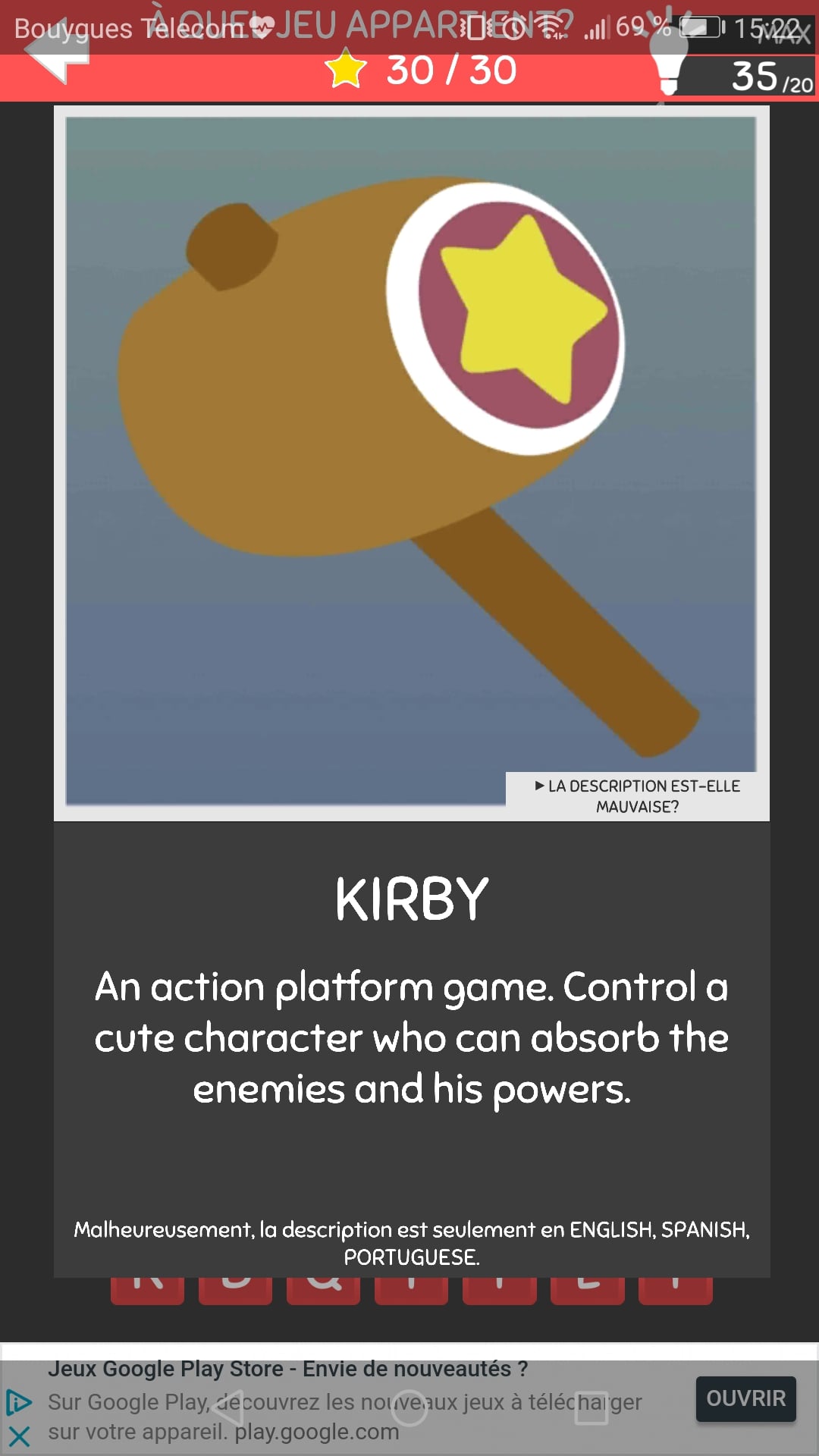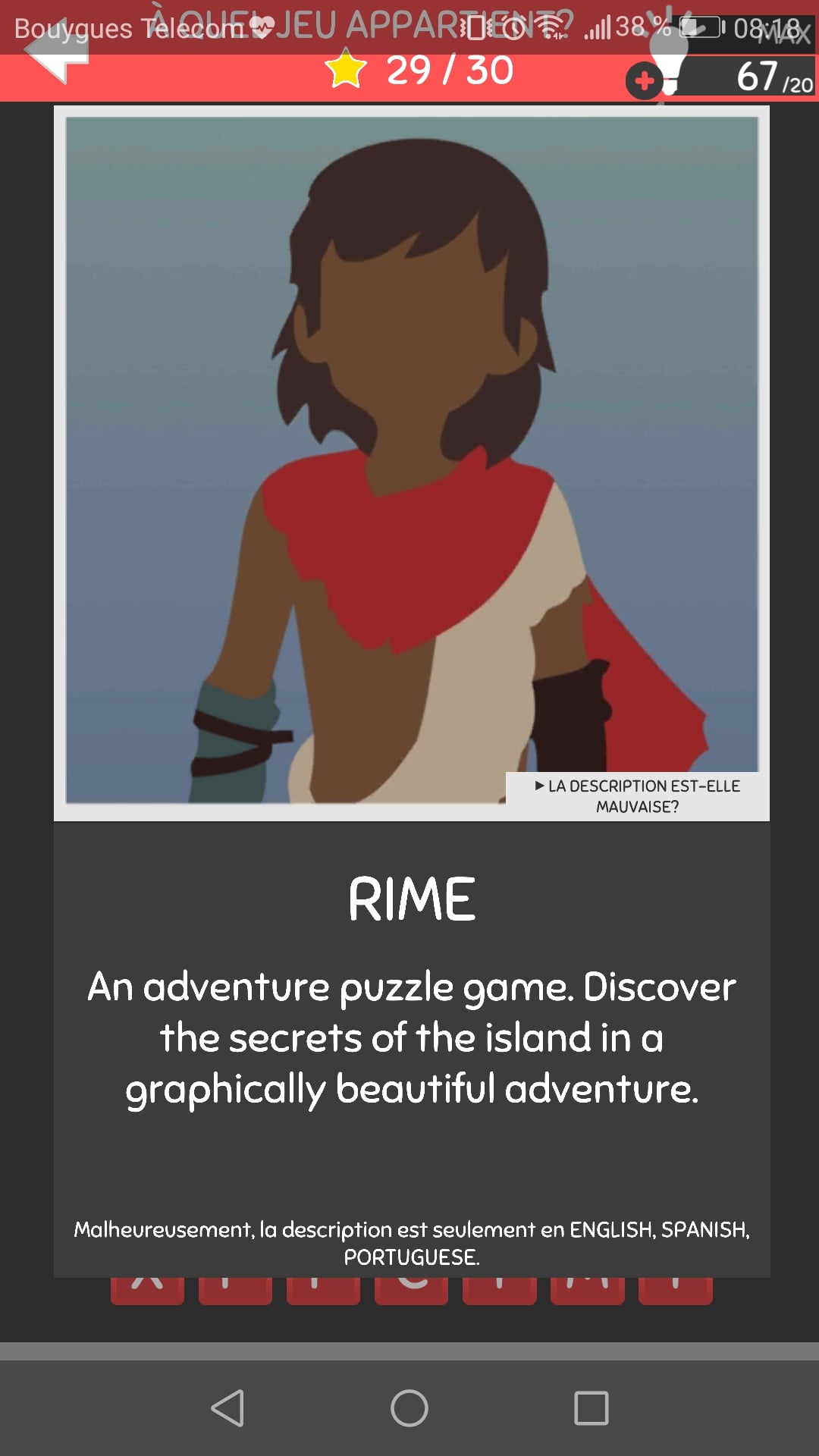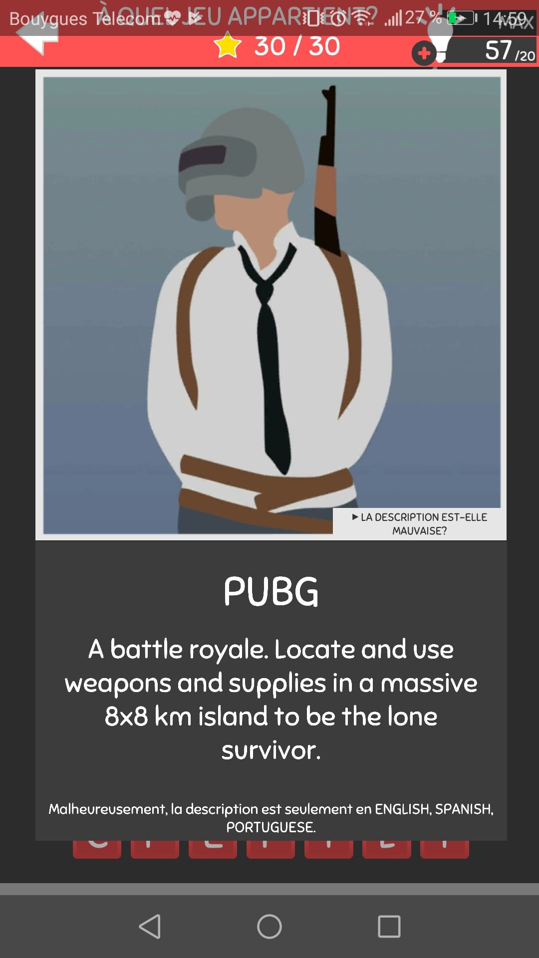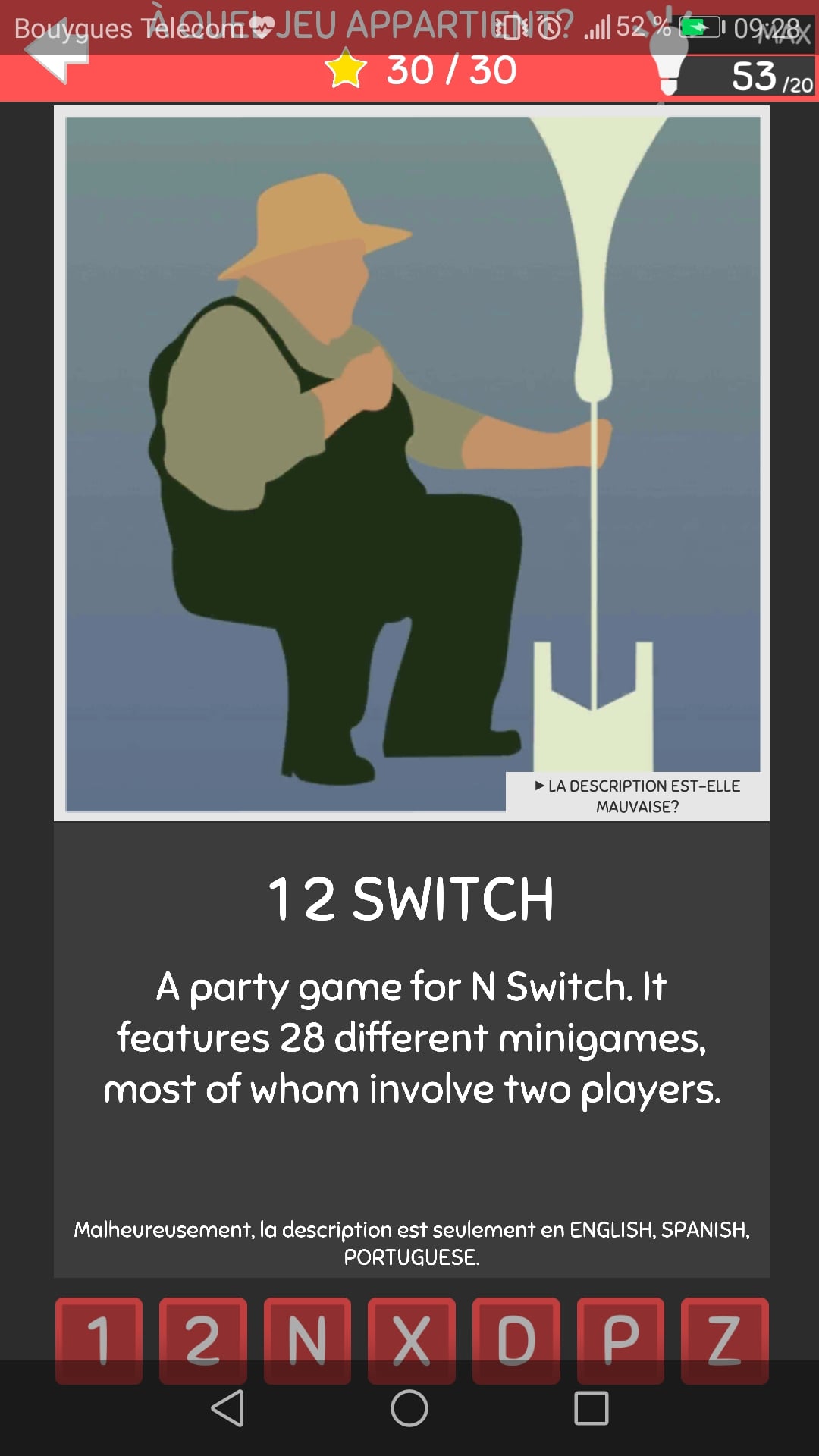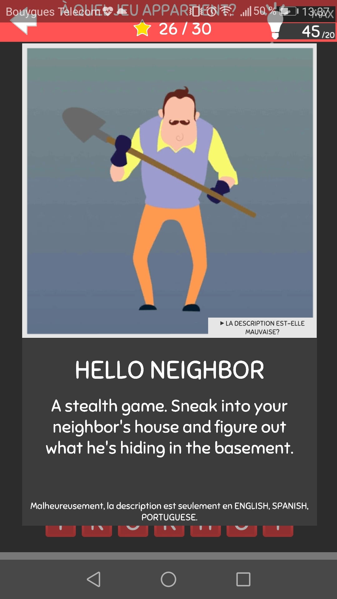 Mega Quiz Gaming est une application qui teste votre culture dite « gaming » à travers des images. Le principe est simple, il existe plusieurs thèmes et chacun comporte une trentaine d’images. Sous celles-ci, vous trouverez des lettres qu’il faudra reconstituer avec pertinence pour retrouver l’intitulé du jeu vidéo. Il est plutôt agréable d’y voir divers dessins ou symboles et presque jamais avec le même pinceau. Pour vous aider, l’application dispose d’un système d’indices que l’on obtient en obtenant des bonnes réponses ou en s’infligeant des dizaines de secondes de pub, ce qui n’est jamais agréable. C’est pourquoi, votre serviteur ici présent a sacrifié de son temps pour partager toutes les réponses du titre, si jamais vous en avez besoin.