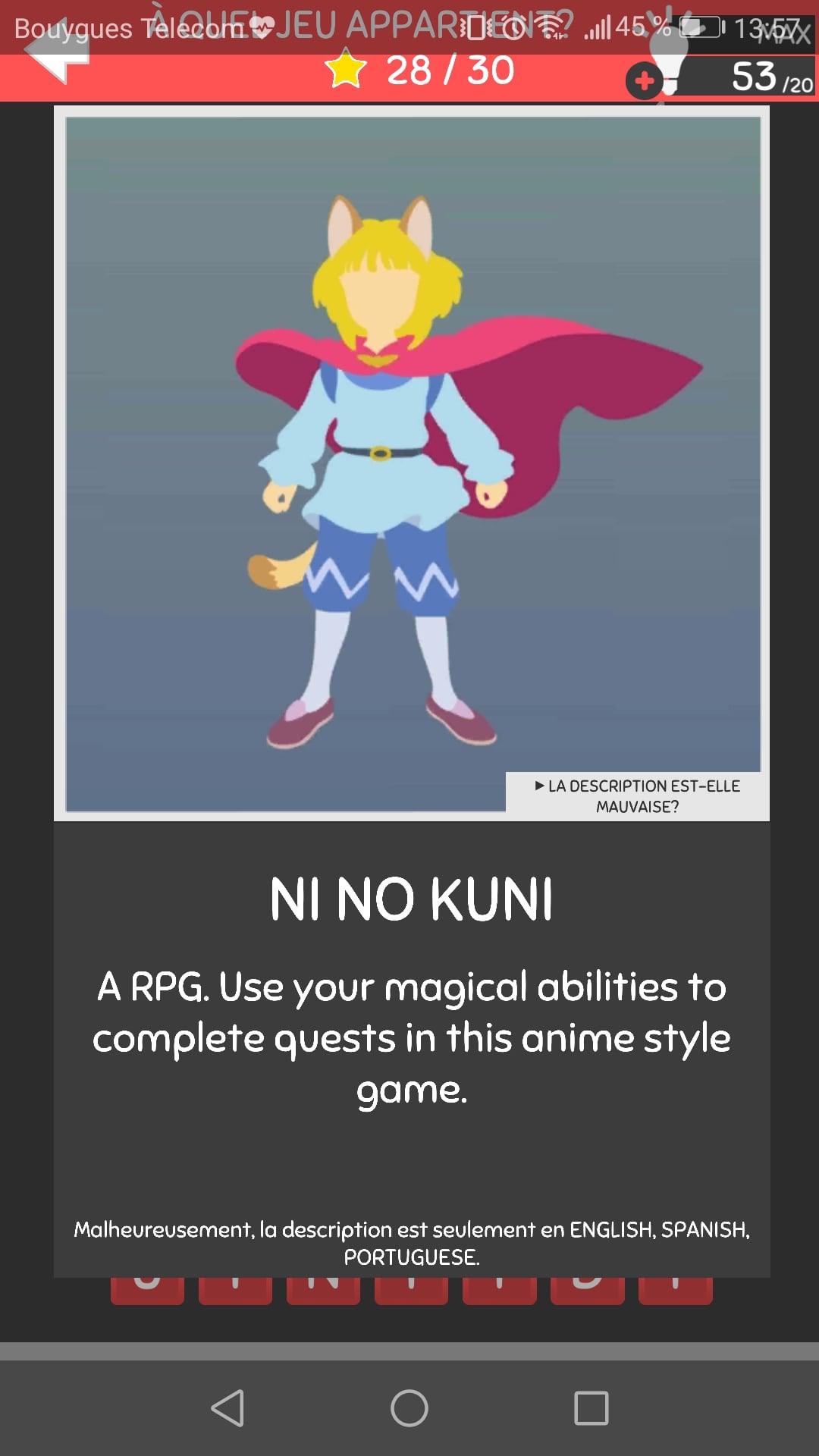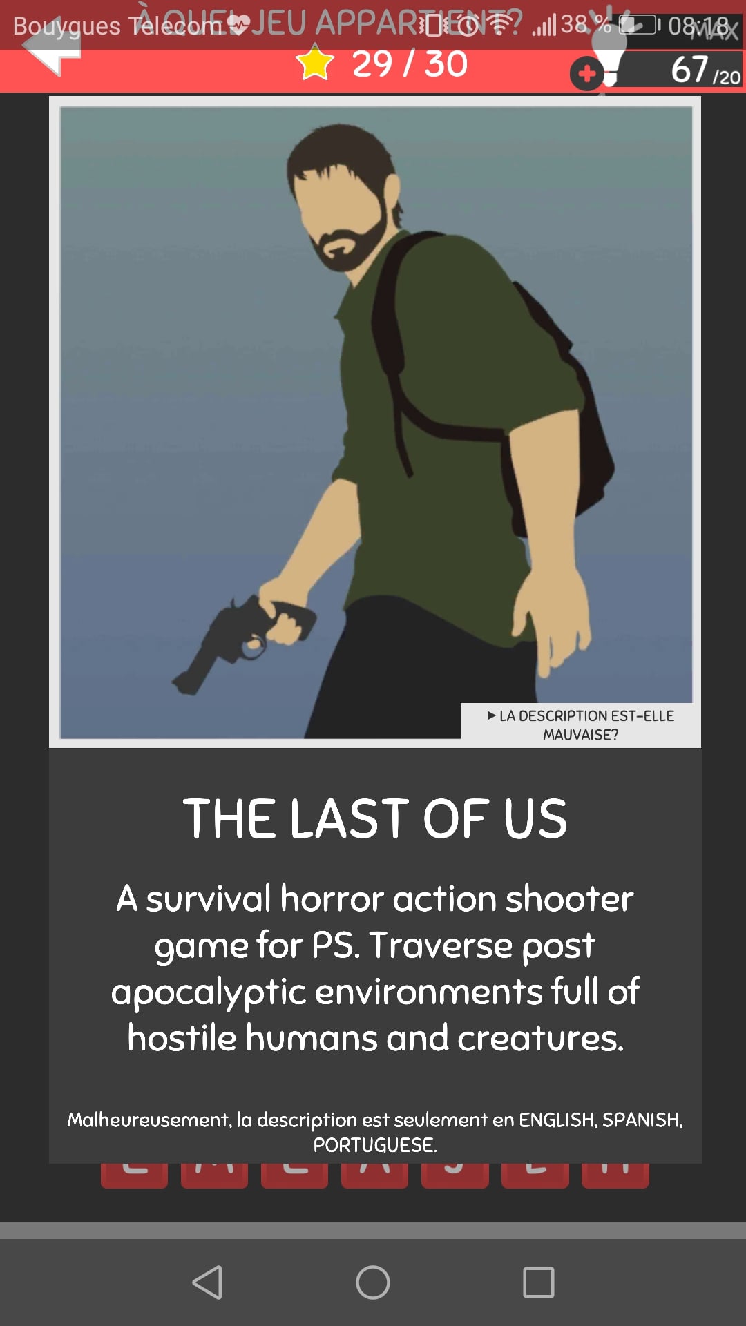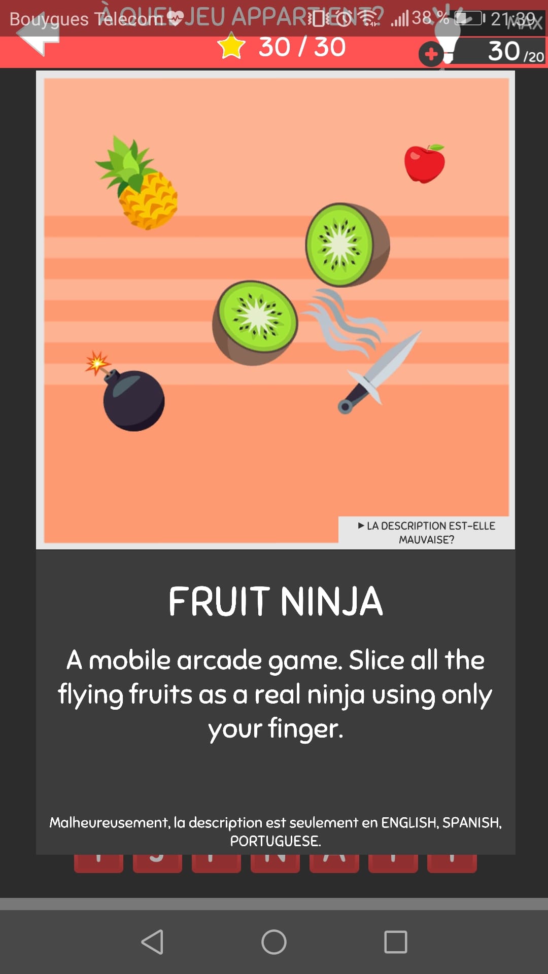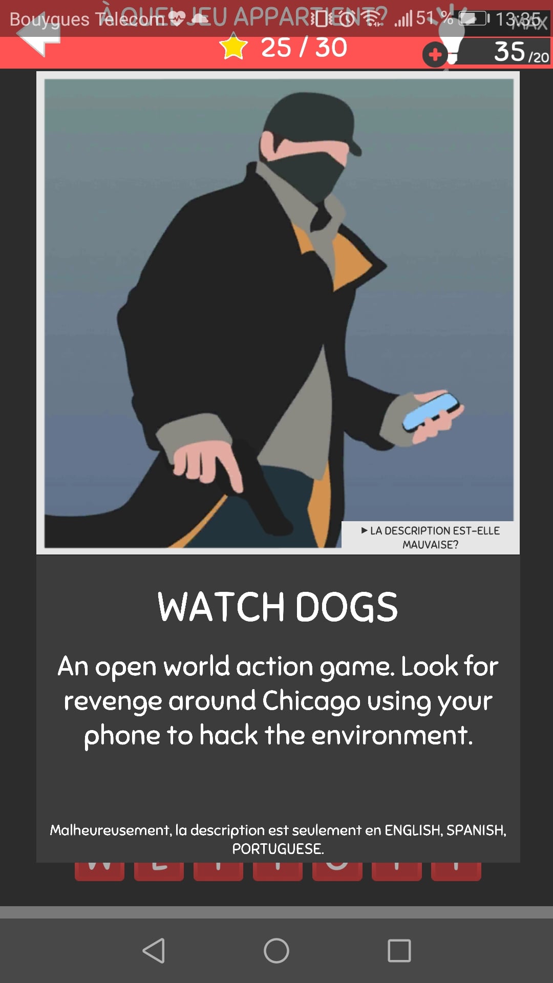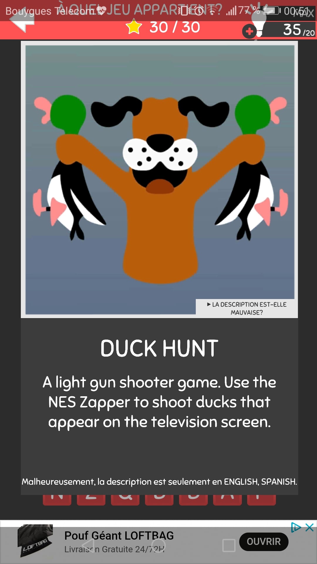 Mega Quiz Gaming est une application qui teste votre culture dite « gaming » à travers des images. Le principe est simple, il existe plusieurs thèmes et chacun comporte une trentaine d’images. Sous celles-ci, vous trouverez des lettres qu’il faudra reconstituer avec pertinence pour retrouver l’intitulé du jeu vidéo. Il est plutôt agréable d’y voir divers dessins ou symboles et presque jamais avec le même pinceau. Pour vous aider, l’application dispose d’un système d’indices que l’on obtient en obtenant des bonnes réponses ou en s’infligeant des dizaines de secondes de pub, ce qui n’est jamais agréable. C’est pourquoi, votre serviteur ici présent a sacrifié de son temps pour partager toutes les réponses du titre, si jamais vous en avez besoin.