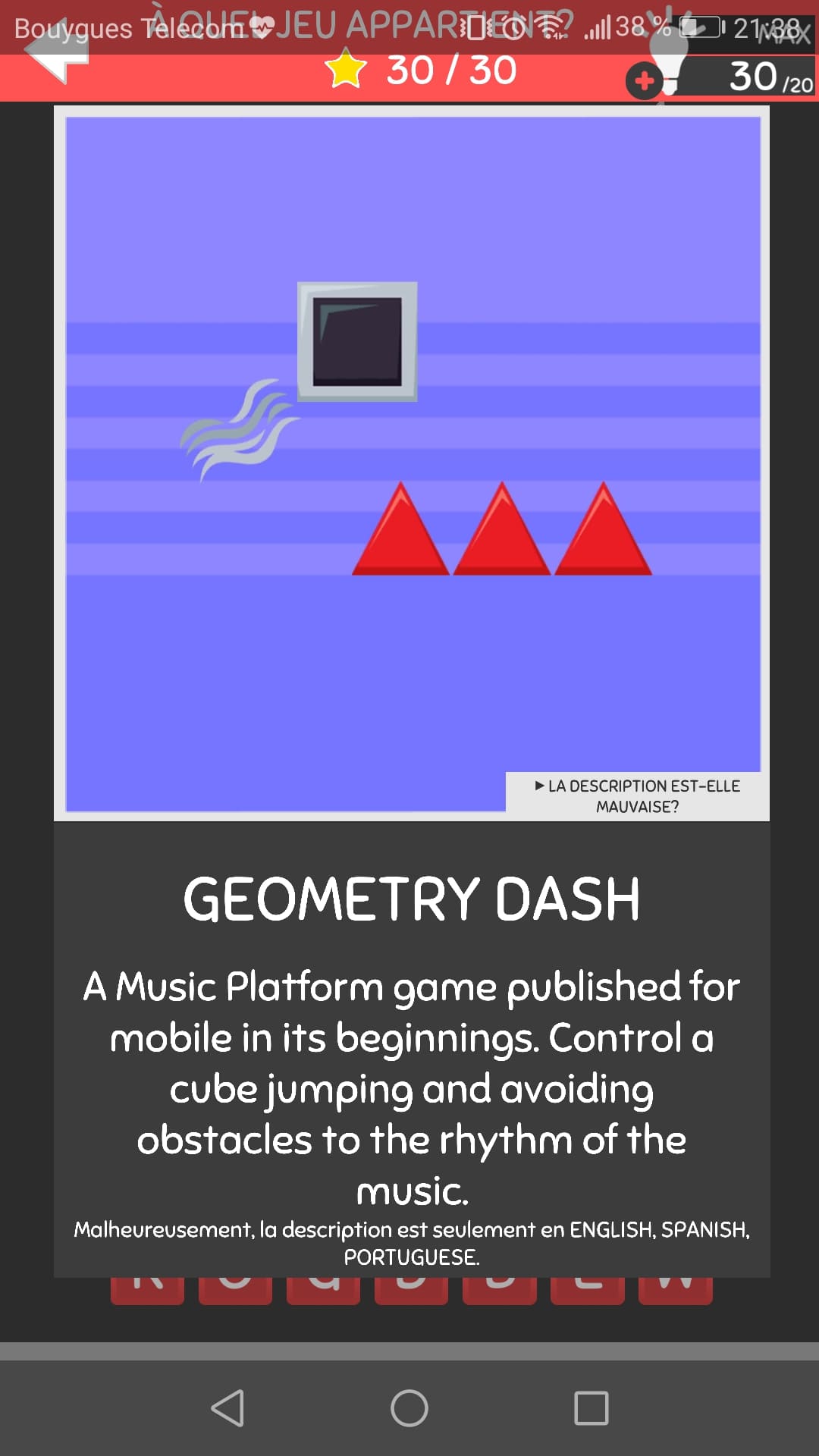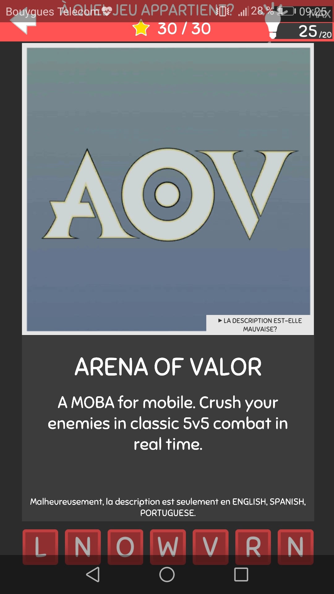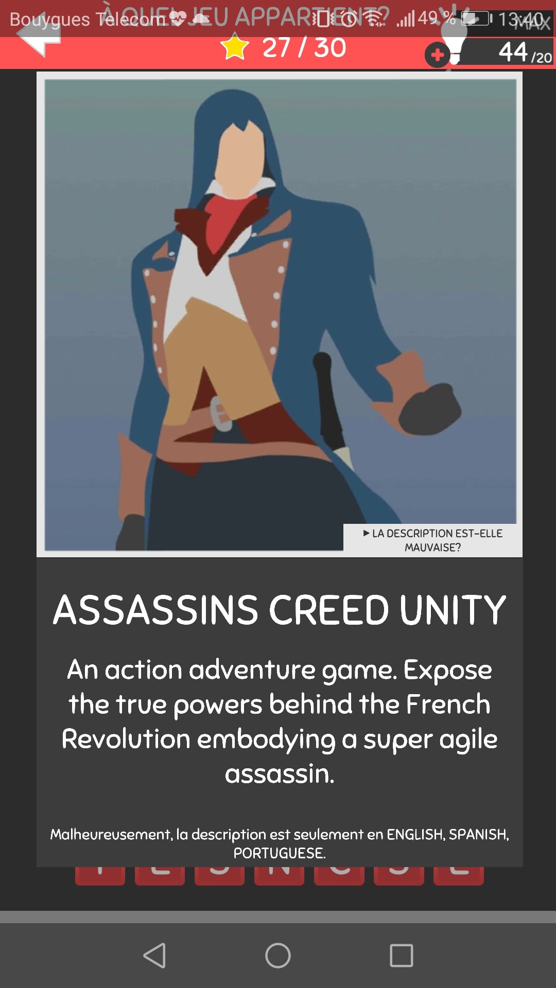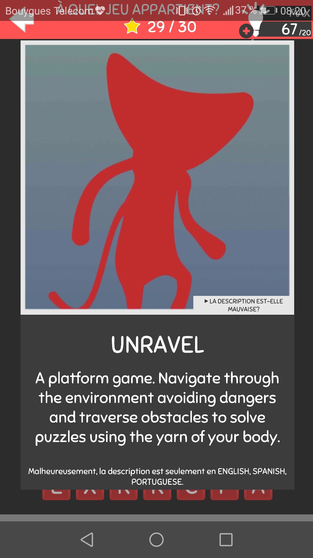 Mega Quiz Gaming est une application qui teste votre culture dite « gaming » à travers des images. Le principe est simple, il existe plusieurs thèmes et chacun comporte une trentaine d’images. Sous celles-ci, vous trouverez des lettres qu’il faudra reconstituer avec pertinence pour retrouver l’intitulé du jeu vidéo. Il est plutôt agréable d’y voir divers dessins ou symboles et presque jamais avec le même pinceau. Pour vous aider, l’application dispose d’un système d’indices que l’on obtient en obtenant des bonnes réponses ou en s’infligeant des dizaines de secondes de pub, ce qui n’est jamais agréable. C’est pourquoi, votre serviteur ici présent a sacrifié de son temps pour partager toutes les réponses du titre, si jamais vous en avez besoin.