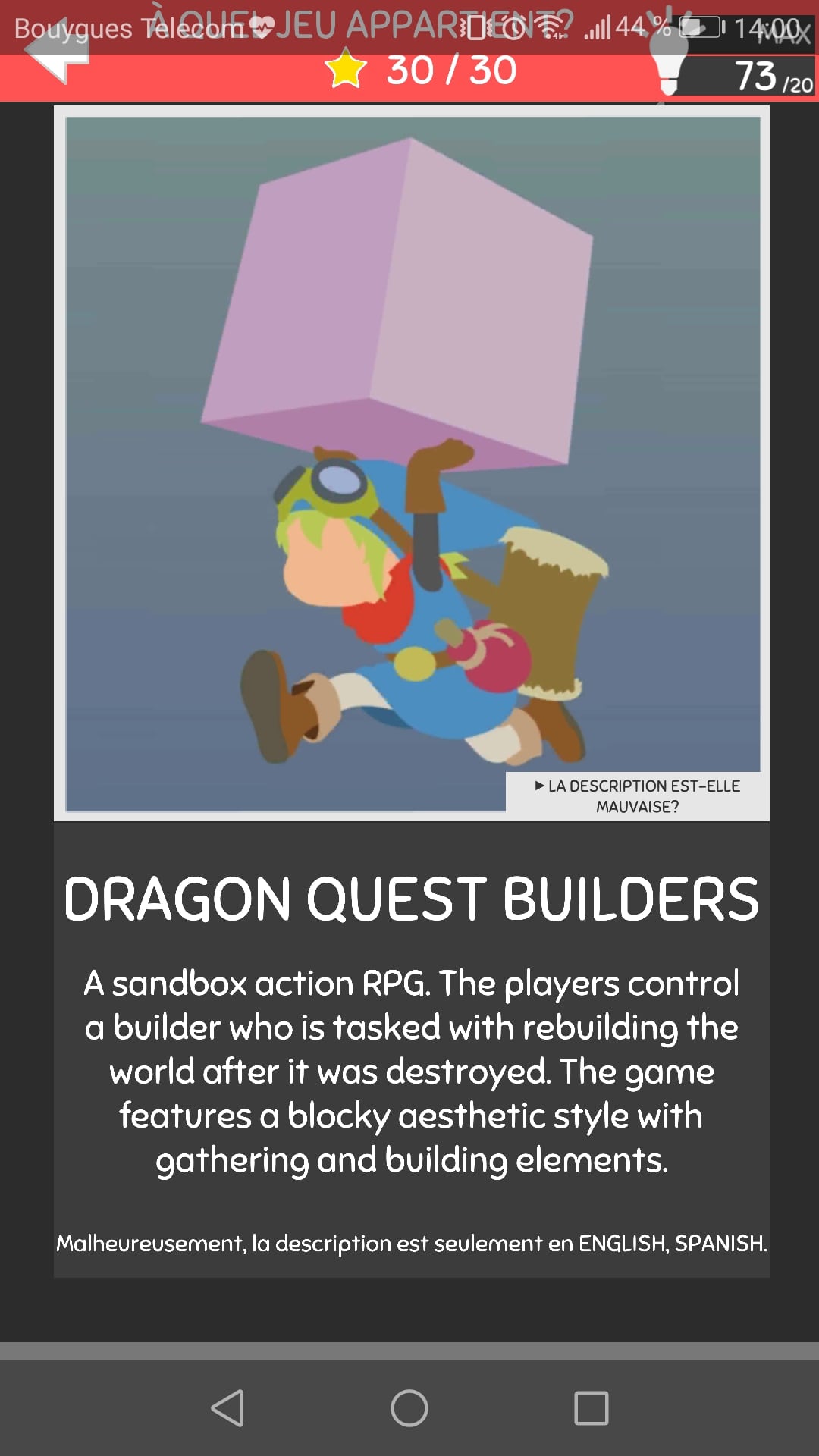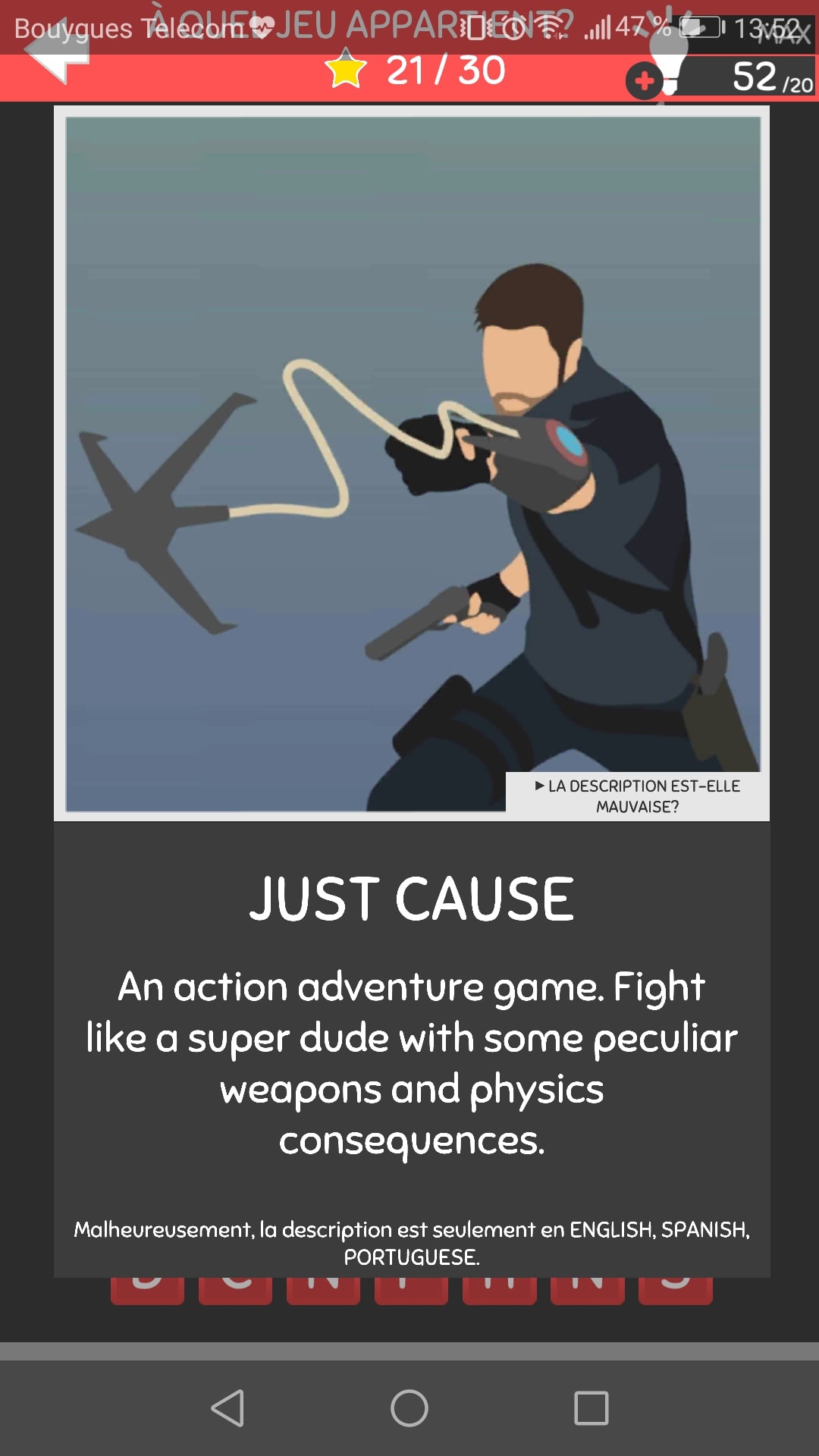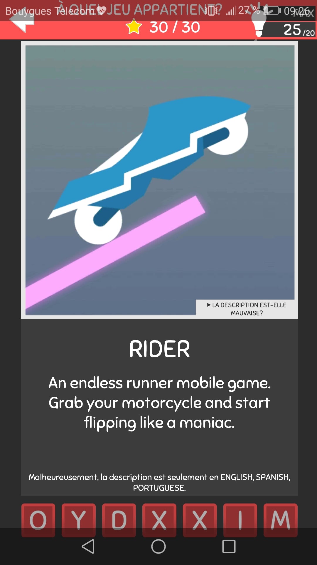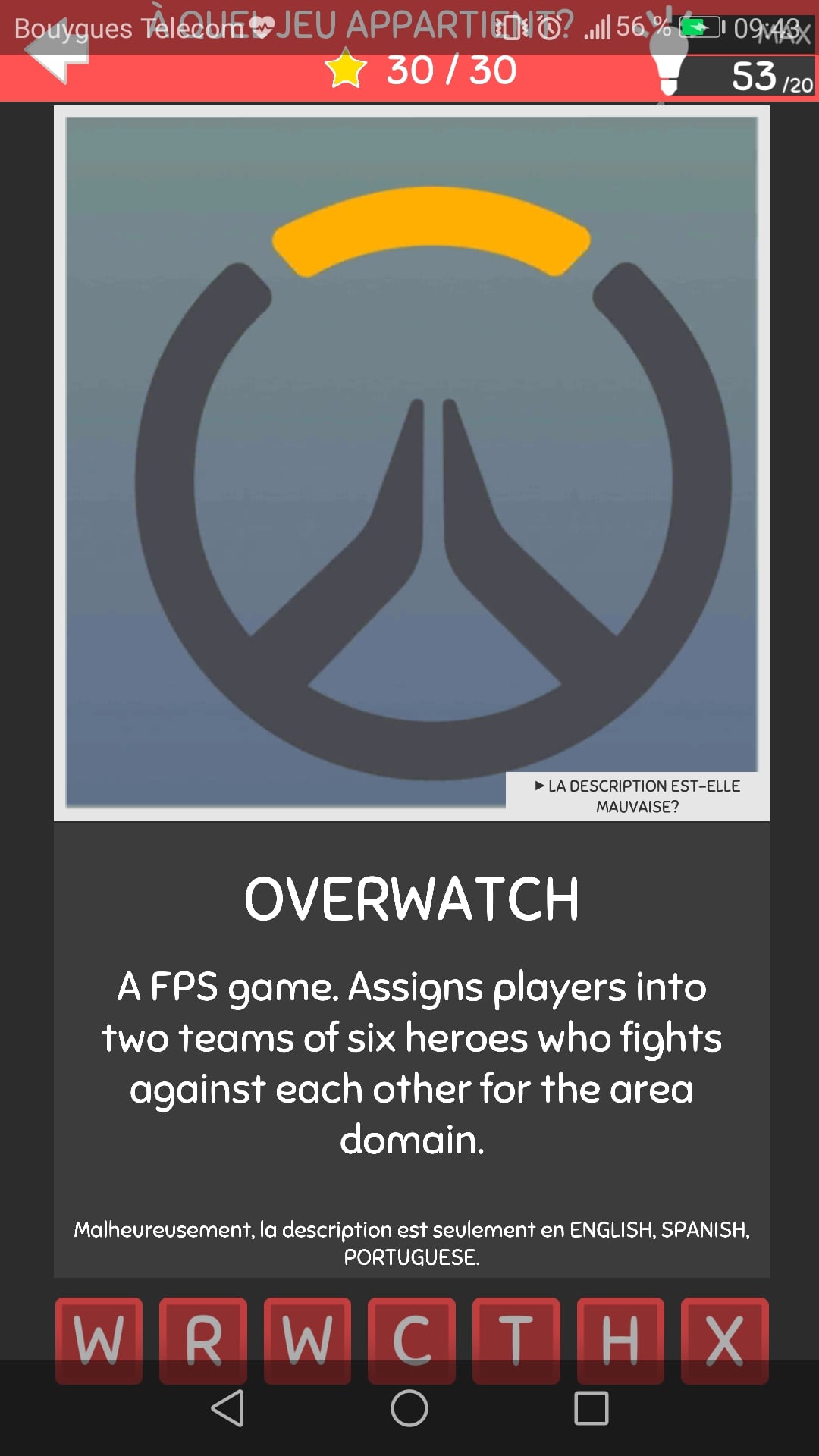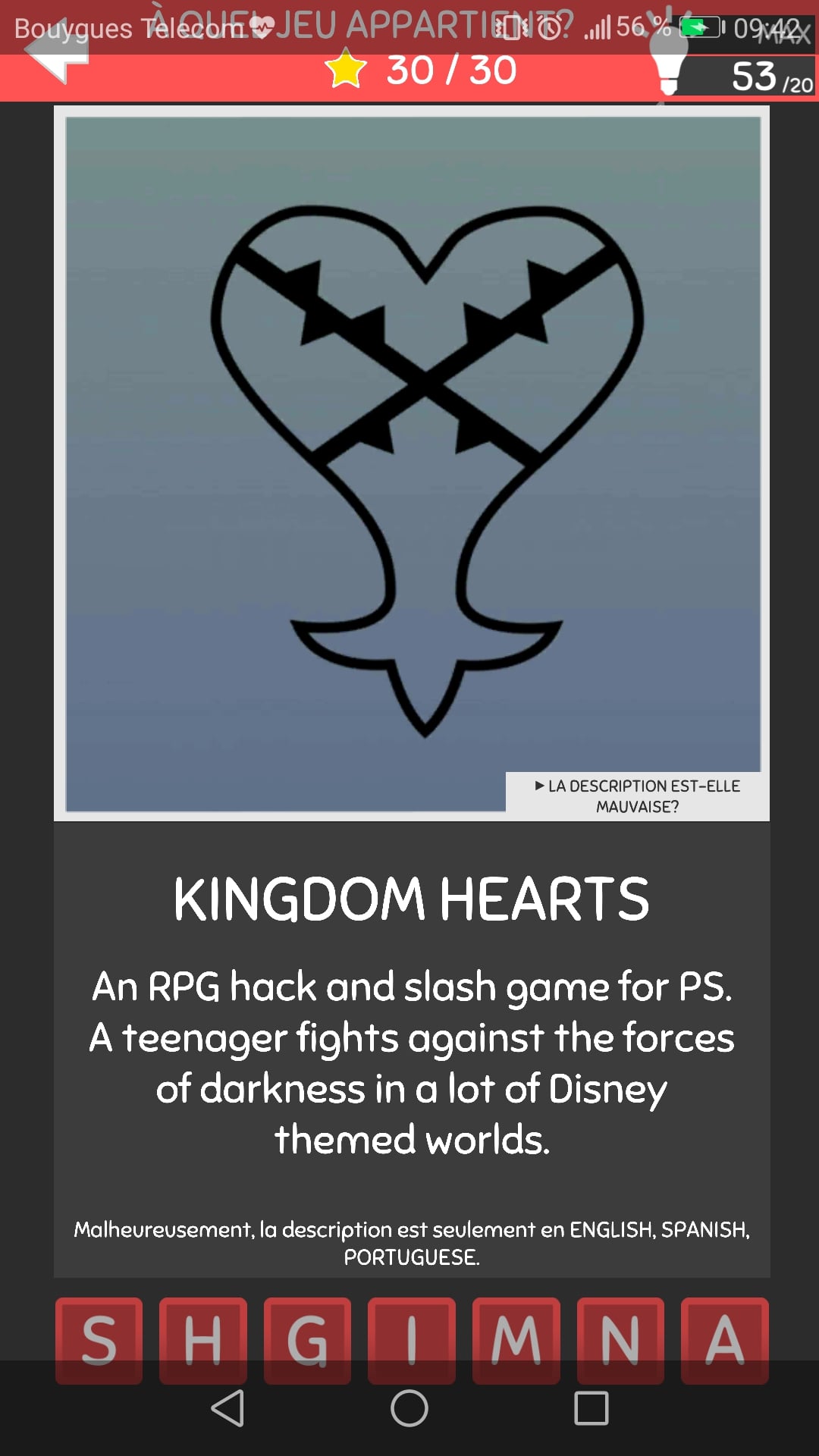 Mega Quiz Gaming est une application qui teste votre culture dite « gaming » à travers des images. Le principe est simple, il existe plusieurs thèmes et chacun comporte une trentaine d’images. Sous celles-ci, vous trouverez des lettres qu’il faudra reconstituer avec pertinence pour retrouver l’intitulé du jeu vidéo. Il est plutôt agréable d’y voir divers dessins ou symboles et presque jamais avec le même pinceau. Pour vous aider, l’application dispose d’un système d’indices que l’on obtient en obtenant des bonnes réponses ou en s’infligeant des dizaines de secondes de pub, ce qui n’est jamais agréable. C’est pourquoi, votre serviteur ici présent a sacrifié de son temps pour partager toutes les réponses du titre, si jamais vous en avez besoin.