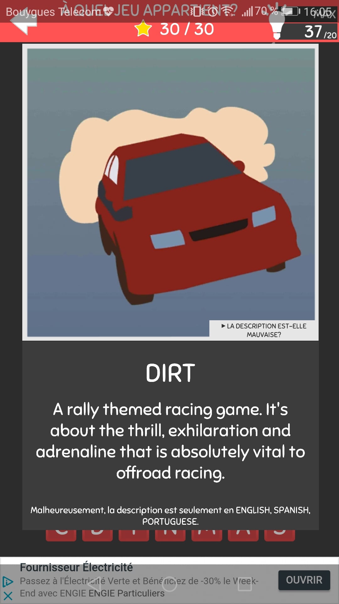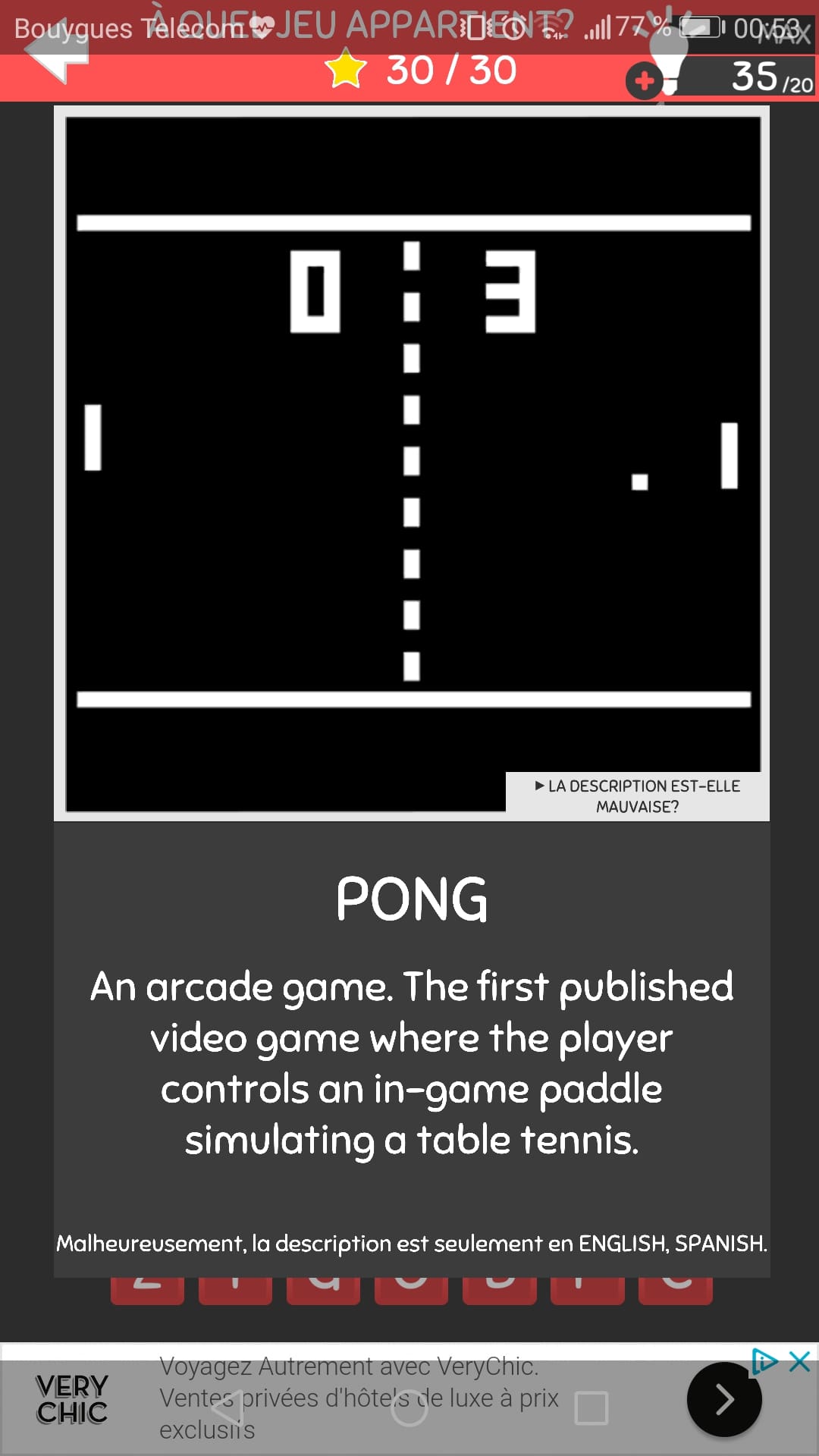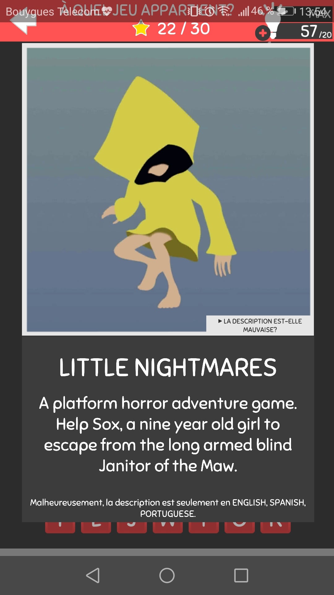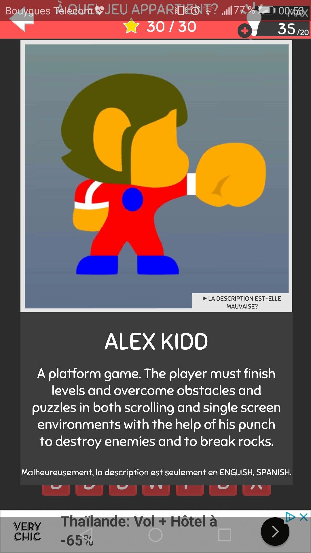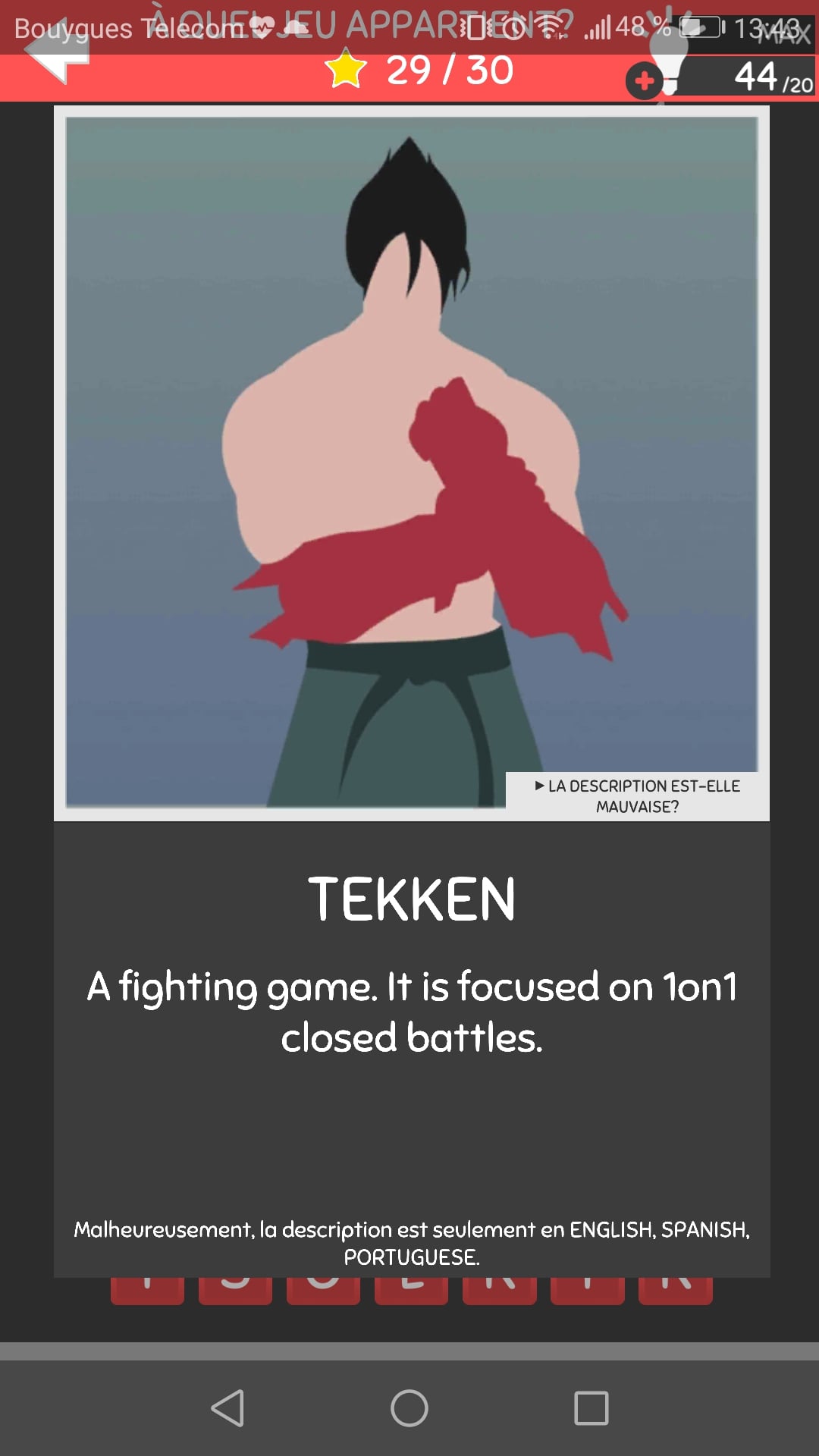 Mega Quiz Gaming est une application qui teste votre culture dite « gaming » à travers des images. Le principe est simple, il existe plusieurs thèmes et chacun comporte une trentaine d’images. Sous celles-ci, vous trouverez des lettres qu’il faudra reconstituer avec pertinence pour retrouver l’intitulé du jeu vidéo. Il est plutôt agréable d’y voir divers dessins ou symboles et presque jamais avec le même pinceau. Pour vous aider, l’application dispose d’un système d’indices que l’on obtient en obtenant des bonnes réponses ou en s’infligeant des dizaines de secondes de pub, ce qui n’est jamais agréable. C’est pourquoi, votre serviteur ici présent a sacrifié de son temps pour partager toutes les réponses du titre, si jamais vous en avez besoin.