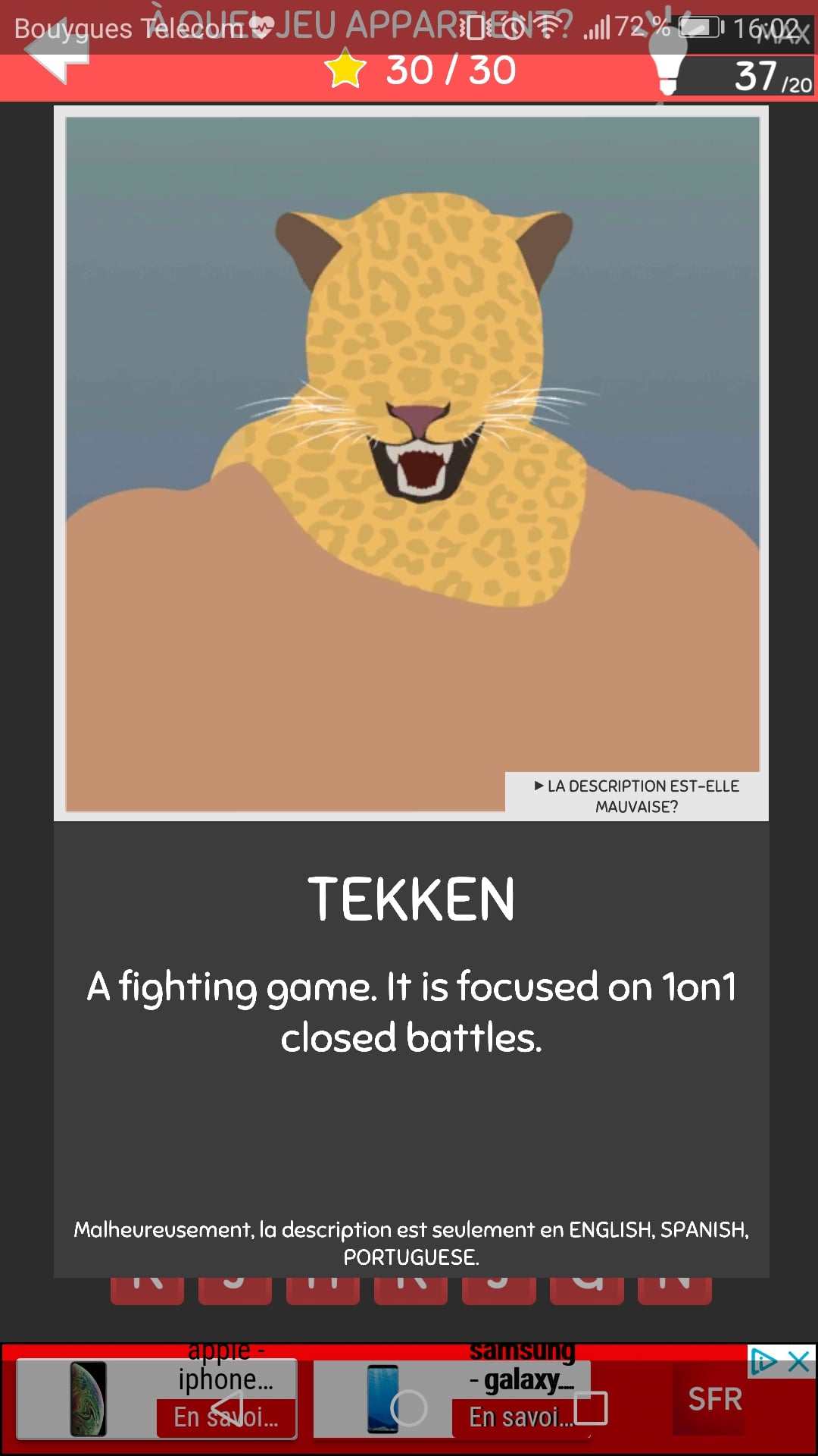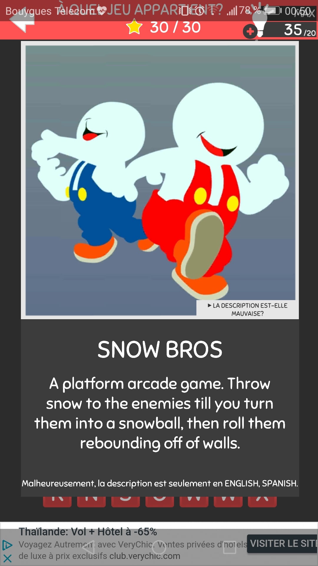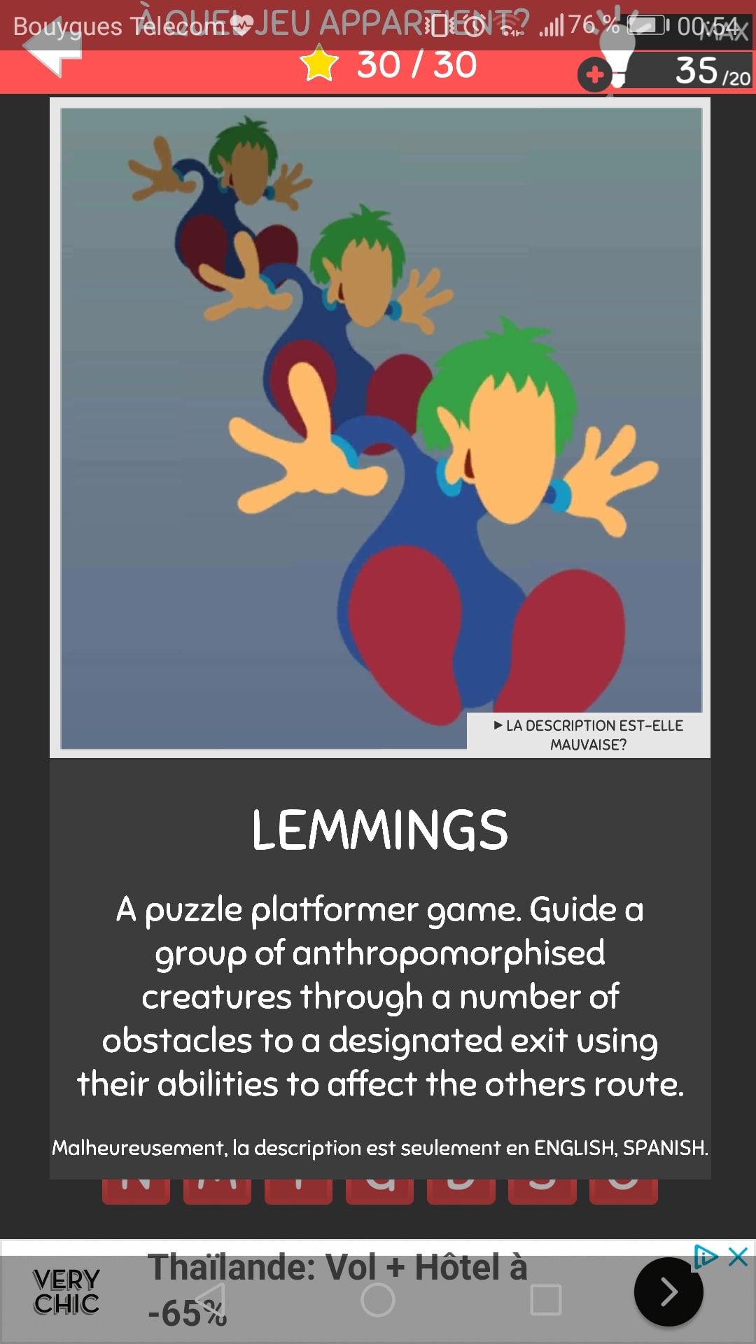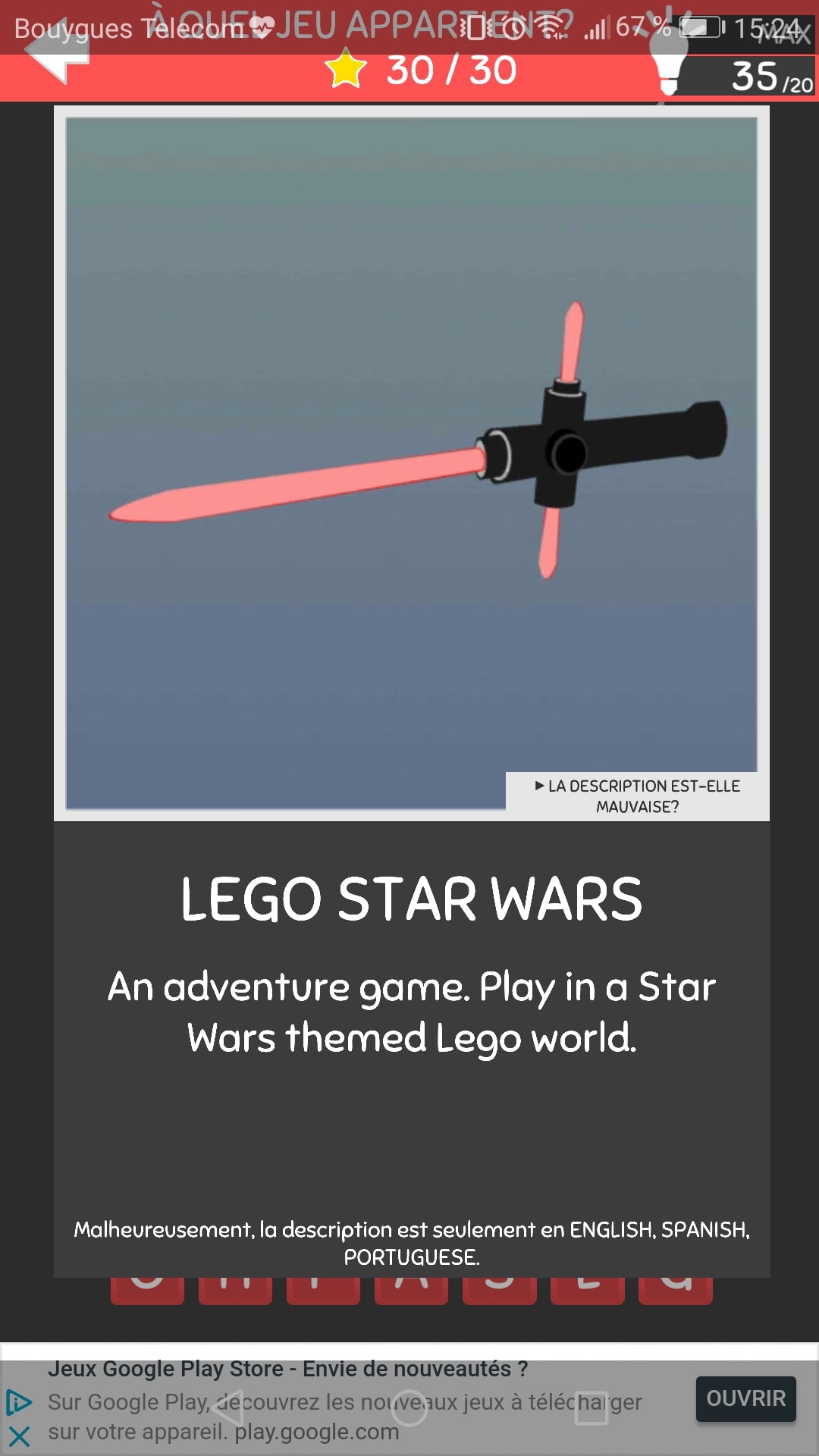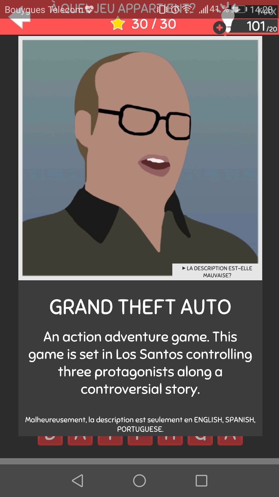 Mega Quiz Gaming est une application qui teste votre culture dite « gaming » à travers des images. Le principe est simple, il existe plusieurs thèmes et chacun comporte une trentaine d’images. Sous celles-ci, vous trouverez des lettres qu’il faudra reconstituer avec pertinence pour retrouver l’intitulé du jeu vidéo. Il est plutôt agréable d’y voir divers dessins ou symboles et presque jamais avec le même pinceau. Pour vous aider, l’application dispose d’un système d’indices que l’on obtient en obtenant des bonnes réponses ou en s’infligeant des dizaines de secondes de pub, ce qui n’est jamais agréable. C’est pourquoi, votre serviteur ici présent a sacrifié de son temps pour partager toutes les réponses du titre, si jamais vous en avez besoin.