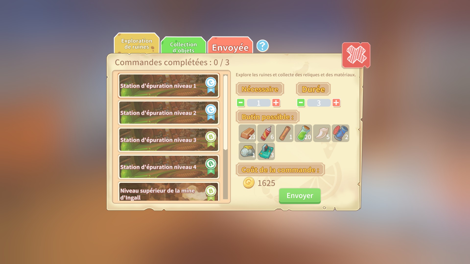 A un certain moment du jeu, il deviendra parfois difficile d’obtenir des ressources rares tels que les ressorts ou les bouteilles de liquide de trempe. Pour vous éviter de longues périodes de farm dans les mines, sachez qu’il est possible de demander à la Brigade Civile d’aller en chercher pour vous. Le panneau des commandes est dispo dans leur QG (situé près de l’infirmerie), juste à côté de l’entrée. Il est alors possible de sélectionner un ensemble de ressources typique des donjons parcourus, ou de se focaliser sur une ressource précise. Ce menu est également utile pour récolter plus rapidement des ressources autrement disponibles par un fastidieux farm d’ennemis (comme les peaux abimées ou les os de monstres).