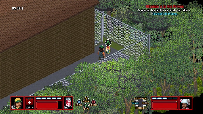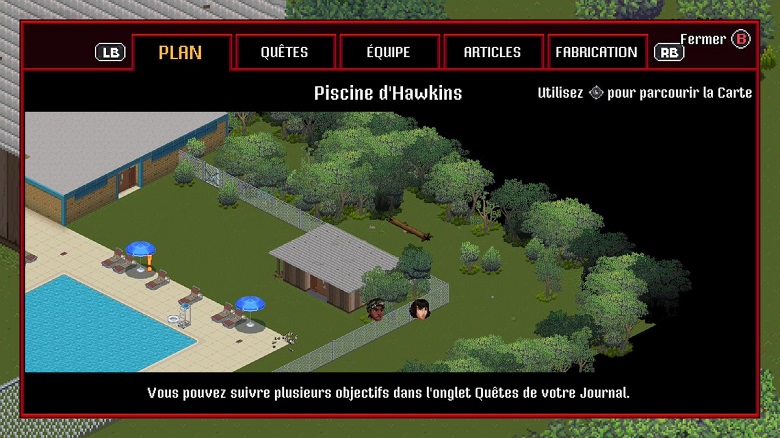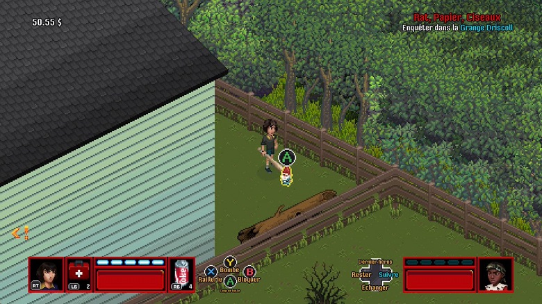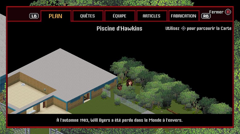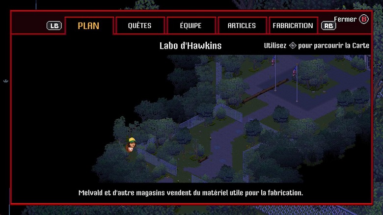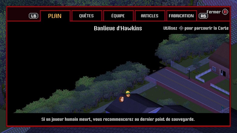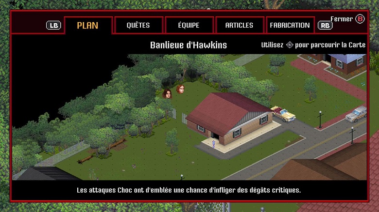 Banlieure d’Hawkins. Maison de Dustin. Longez le grillage vers la gauche jusqu’à ce que vous puissiez vous faufiler à travers les arbres