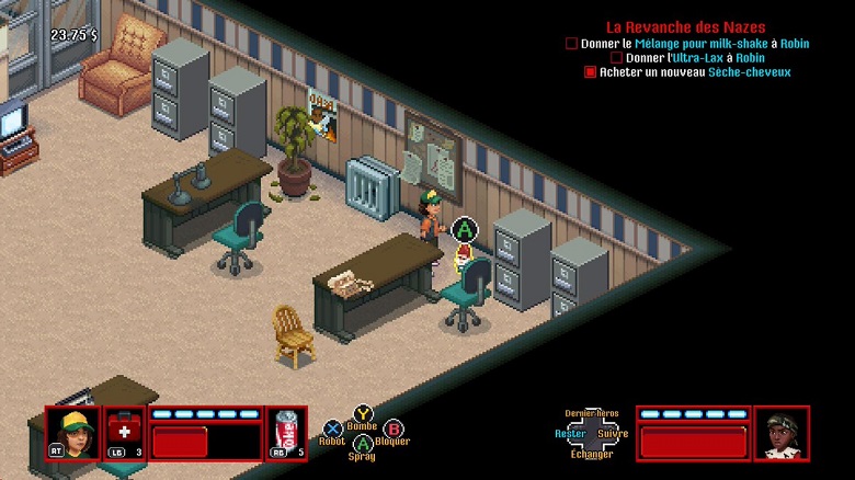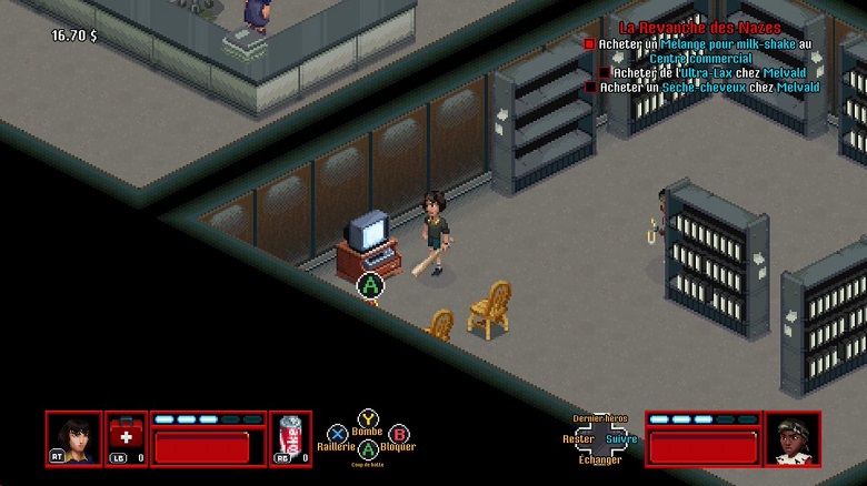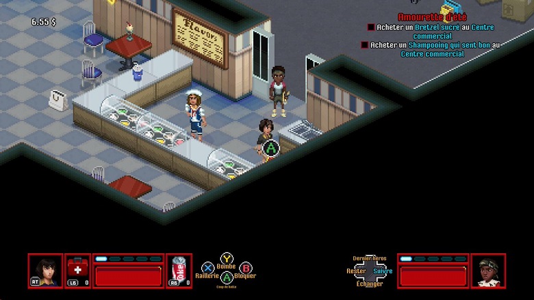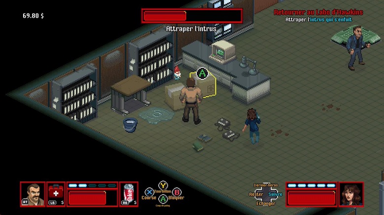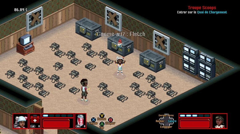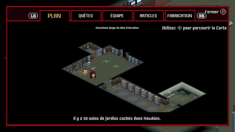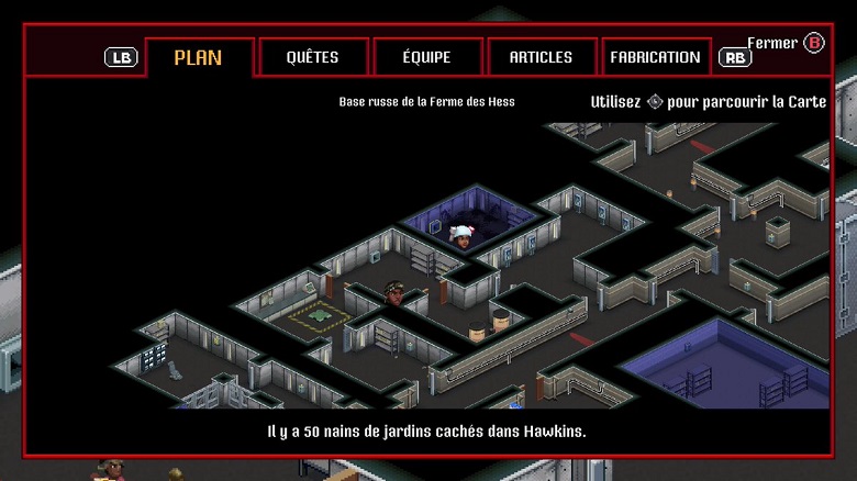 Stranger Things 3 le jeu est un jeu en pixel art où l’on campe les héros de la série. Dans le jeu on court à droite à gauche pour rendre des services afin de gagner de l’argent, on accompagne nos amis dans des quêtes épiques mais on doit trouver 50 nains à travers toute la map.