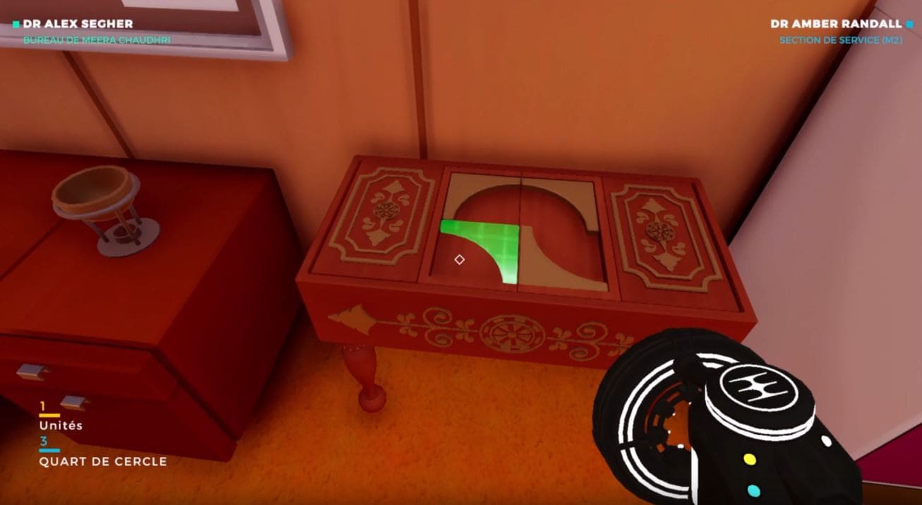 La mini-énigme du Docteur Meera Chaudhri. Si vous cherchez désespérément la voie à suivre, que vous naviguez entre trois salles sans savoir quoi faire, sachez que vous avez simplement manqué un détail.
