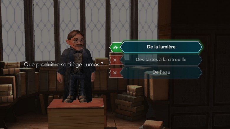 Une question vous est posée concernant l’univers de Harry Potter, pouvant aller de l’action d’un sort jusqu’à la couleur des yeux de Mme Bibine (jaune, à titre informatif). Trois propositions vous sont proposées à chaque fois, il vous suffit de cliquer sur la bonne réponse. Nous avons d’ailleurs un guide dédié pour vous aider si vous en avez le besoin.