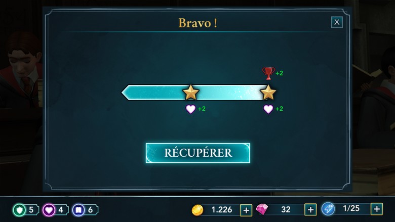 Chaque cours a besoin d’une seule étoile pour être validée, (dans le cas contraire, vous perdrez 2 points de maison) mais des étoiles bonus peuvent être acquises afin d’obtenir de meilleures récompenses.