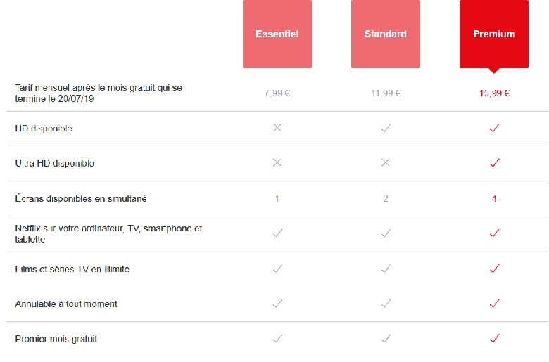 - Forfait Premium (4 écrans, 4K) passe de 13,99€ à 15,99€ / mois