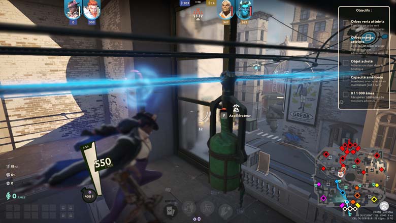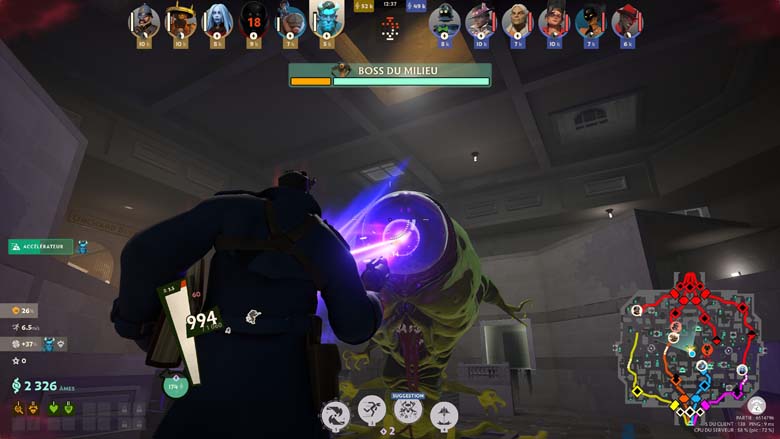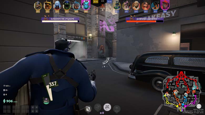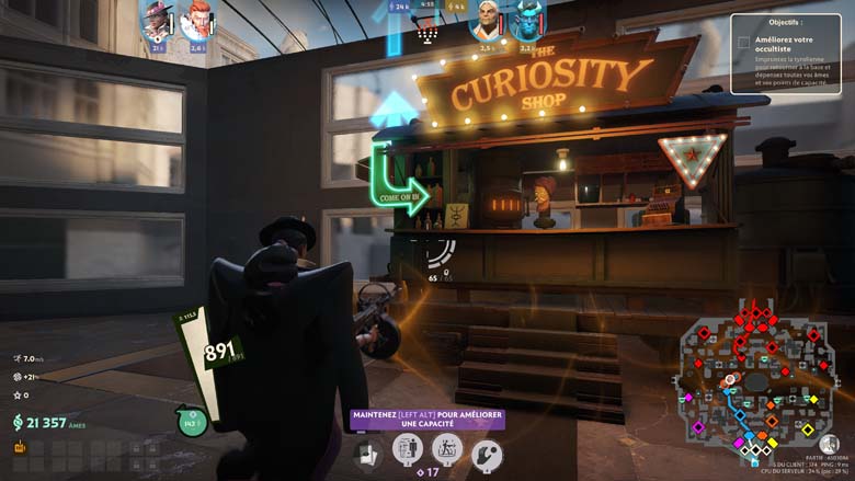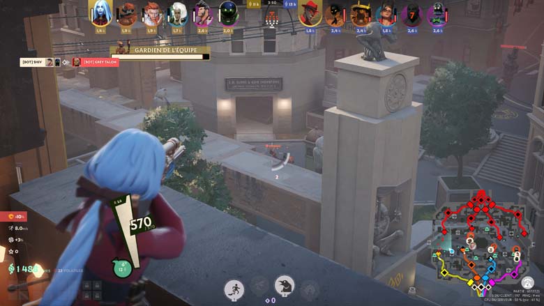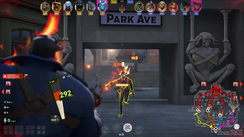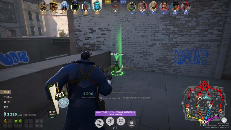 Faut-il alors être doué en FPS pour être bon à Deadlock ? Ça aidera, bien évidemment, mais l’enjeu ne semble pas être là, tant la visée n’est pas un problème, du moins sur les attaques à l’arme. Car tous les occultistes ne sont pas logés à la même enseigne sur la visée de leurs pouvoirs. Non l’enjeu semble plus être sur la communication (une belle roue est d’ailleurs disponible), la maitrise du terrain et de ses trajets et la maitrise de son personnage bien évidemment.