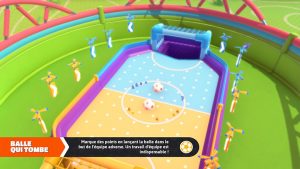 Grosse mention coup de cœur, d’ailleurs, au jeu de plateforme de dernière manche qui place les derniers joueurs sur des tuiles qui disparaissent après avoir marché dessus. Ce mini-jeu est constitué de plusieurs niveaux de plateformes, chacune composée d’hexagones qui disparaissent en passant dessus. Très technique et surtout tactique, l’objectif et de rester le plus longtemps possible sur les couches supérieures pour ne pas être dans les premiers à tomber tout en évitant de se caramboler avec les autres joueurs dont les pas réduisent également la quantité de surface disponible.