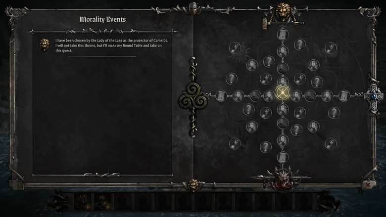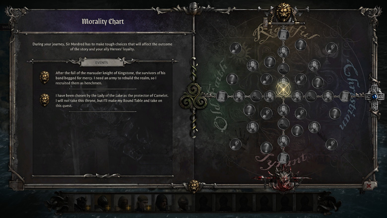 De ce choix, et des autres que vous serez amené à faire dans des phases JDR, découlera un positionnement sur un tableau de moralité. Axe des abscisses (révise tes maths) votre positionnement vis à vis de la religion : plutôt anciens dieux ou dieu unique ? Sur celui des ordonnées celui de votre grandeur d’âme et de cœur. Votre positionnement vous permettra d’accéder à différents bonus, pouvoirs et recrues.