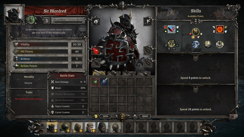 Du côté de votre table ronde, vous aurez la possibilité de choisir votre équipe de 4 avant chaque mission, chaque chevalier ayant des compétences uniques et des talents améliorables allant de pair, il vous faudra gérer au mieux votre assemblée pour ne laisser personne derrière. Spoiler alert : les archers semblent surpuissants dans la version « testée ».