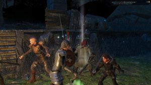 Quoi de mieux qu’un hommage à l’un des clichés les plus persistants pour commencer cette sainte mission de retranscription ? C’est bien autour d’une table d’auberge que vos aventuriers vont se retrouver pour narrer leurs péripéties les ayant amenés en ce lieu. Narration qui servira de tuto pour prendre en main les différents aspects du jeu : déplacement, inventaire, combat, furtivité, interaction avec l’environnement.