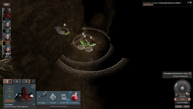 Héritant donc de la licence D&D vous serez en terrain connu si vous n’êtes pas un nouveau venu dans le monde du JDR. Les combats sont en tour par tour et vous pourrez alterner déplacements et attaques comme bon vous semble. D&D oblige, vos sorts ne seront utilisables qu’un nombre défini par jour (avant long repos) en fonction de leur type. Pas de visibilité sur les % de réussite de vos attaques, ici tout se joue aux dés en fonction de la classe d’armure (CA) de l’ennemi, du coup certains angles d’attaques pourront vous paraitre ingénieux.