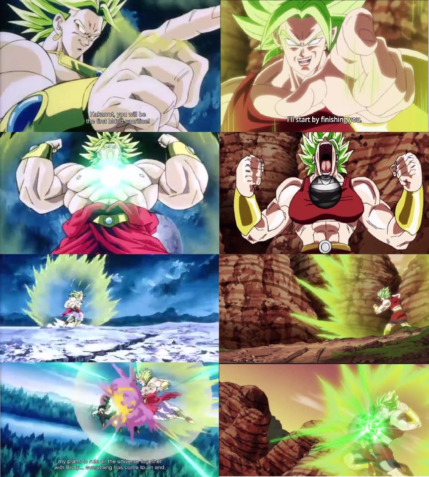 L’alter-ego de Broly, comme nous l’apprend l’épisode 93, se nomme Kale et est originaire de l’univers 6, plus précisément de la planète Sarada. Pour rappel, Sarada est la planète d’où sont originaires les saiyans de l’univers 6, dont Cabba, le jeune homme qui affronta Vegeta lors du tournoi organisé par Beerus et Champa et qui y découvrit le secret de la transformation en Super Saiyan. Alors qu’un autre tournoi se prépare, mettant en jeu le destin de nombreux univers, Cabba se met en tête d’entraîner certains saiyans de sa planète à atteindre la célèbre transformation. Et c’est après avoir aidé Caulifla, une jeune saiyan au tempérament bien trempé, que vient le tour de sa soeur Kale, timide maladive qui ne possède aucune confiance en elle. Après une mise en scène hélas très brouillonne mais qui essaie tout de même de placer des références à Broly, Kale se révèle ainsi être la saiyan légendaire.