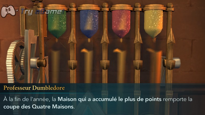 Après avoir sélectionner votre maison, le fameux directeur de Poudlard, Dumbledore prend la parole. C’est lors de ce discours qu’il nous apprend que Harry Potter a survécu et qu’il rejoindra Poudlard dans quelques années. Il explique ensuite que chaque année, chaque maison de Poudlard se défient afin de remporter la Coupe des 4 maisons. Chaque bonne action vous permettra de gagner des points mais chaque échecs ou prises de risque vous en fera perdre. D’ailleurs, n’hésitez pas à consulter notre guide dédié pour la remporter.
