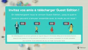 Il existe différents modes de jeu dans 51 Worldwide Games : c’est en tout trois modes qui sont disponibles quand vous lancez le jeu : 1 console, Jeu en local et Jeu en ligne. Je ne reviendrai pas sur ces différents modes dans ce test puisque je détaille chacun d’entre eux dans ma preview du titre que vous pouvez retrouver sur cette page. Rappelons juste quelques mentions spéciales, notamment pour le mode tactile ou la version « Guest Edition ».