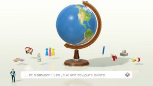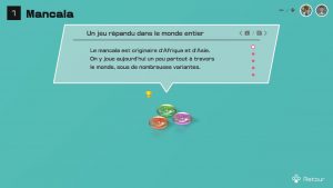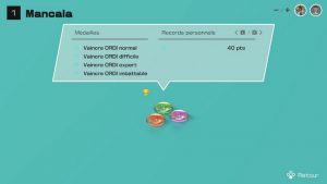 La première chose que l’on découvre en lançant le jeu, c’est un pion humanisé qui nous explique qu’en tout temps, sur Terre, on y fait deux chose : survivre… et s’amuser ! Après nous avoir expliqué qu’une multitude de jeux existaient, il nous demande ensuite de personnaliser l’un des pions afin de nous connaitre un peu mieux. Bien qu’anecdotique, cette personnalisation vous permettre d’avoir cette figurine comme « avatar ». Vous la retrouverez sur le globe avec différents panneaux, vous permettant de constater votre progression dans le jeu. Ainsi, c’est 6 onglets que l’on découvre : Profil, Médailles, Anecdotes, Records personnels, Parties en solo, Parties multijoueur. Sur ce globe, on découvre également différents guides qui nous propose une sélection de 4 à 5 jeux sur un thème précis.