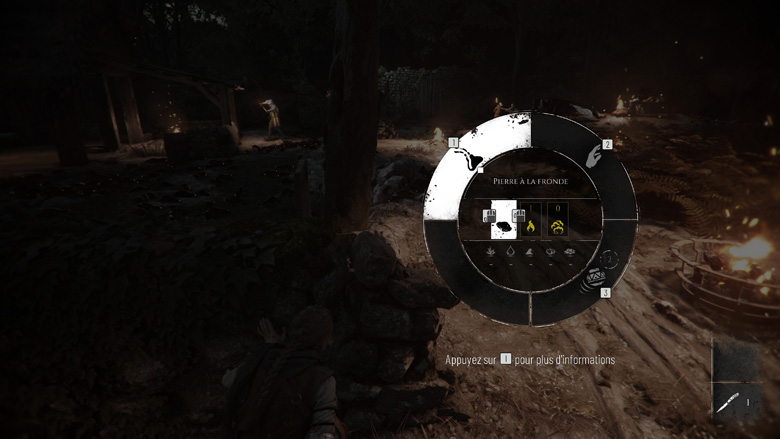 Amicia a toujours sa fronde, agrémentée des trouvailles alchimiques de Lucas. Vous pourrez, selon la situation allumer un feu, l’éteindre, détourner l’attention des rats grâce à des odeurs ou préparer un feu grégeois. La fronde ne sera parfois pas adaptée et on aura donc la possibilité de lancer directement pour détourner l’attention, gérer un puzzle (les séquences avec les rats) ou de se servir d’une arbalète ou d’un poignard pour se défendre. On cherchera outils et matières premières pour améliorer son humble arsenal.