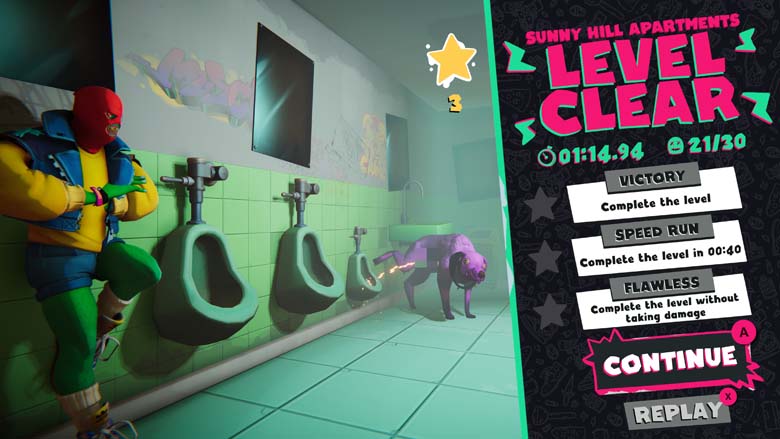 Anger Foot s’adresse aux joueurs cherchant à compléter tous les défis et en recherche d’adrénaline. Niveaux et ennemis diversifiés, on passe un bon moment. Le seul bémol viendra des combats de boss surtout le dernier qui ne demandera qu’à mettre 3 pauvres coup de pieds en phase 1 avant de se transformer en Duke Nukem reniant ainsi sa raison d’être.