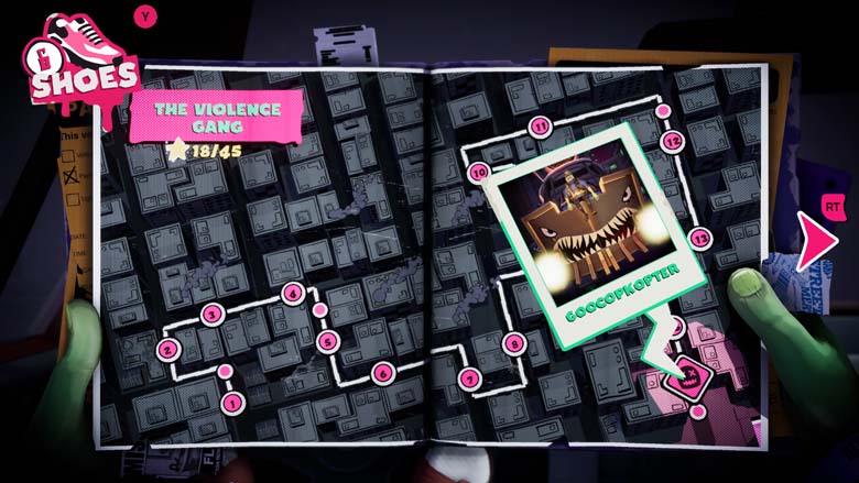La courbe de difficulté est linéaire. Chaque quartier présente de nouveaux ennemis et un nouvel arsenal, en reprenant ceux des précédents. Chaque niveau apporte sa petite nouveauté et chaque paire de chaussure a son pouvoir qui modifie sensiblement l’expérience de jeu.