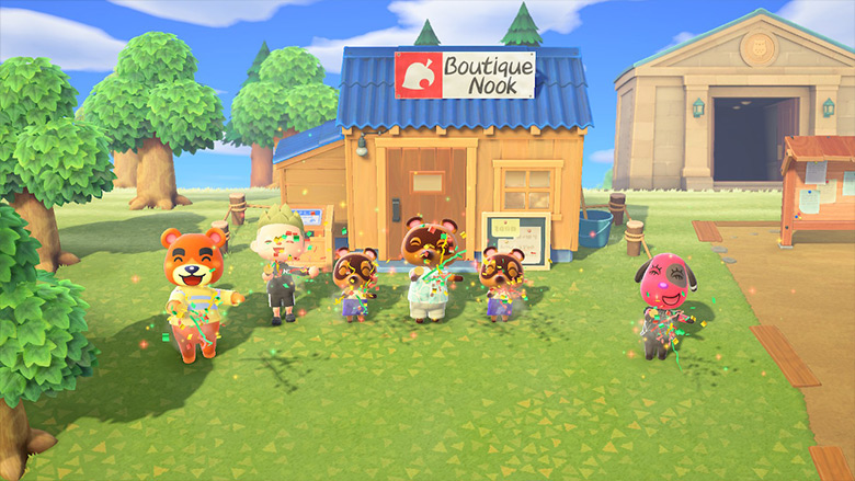 En dehors du développement des infrastructures de votre île, vous aurez donc la possibilité de faire de la déco et de jouer les Cristina Córdula insulaires. À ce sujet, Animal Crossing New Horizons est une véritable mine d’or que l’on creuse sans en voir les limites. Le nombre d’objets et de vêtements disponibles est gigantesque et décliné en plusieurs collections qui vous permettront de personnaliser votre île et votre Robinson volontaire selon vos goûts. Et pour collectionner tout ça, les moyens ne manqueront pas. Si vous pouvez effectivement acheter certaines choses en boutique moyennant clochettes sonnantes et trébuchantes, il est également possible de confectionner énormément d’éléments de déco (sous réserve de trouver les plans), de créer vos propres motifs en pixel art (applicables ensuite sur des vêtements et certains objets), de partir à la chasse aux ballons-cadeaux qui flottent régulièrement au-dessus de votre île, de collecter des fossiles pour le musée, de recevoir des cadeaux de la part de PNJ ou d’autres joueurs, ou encore de participer à certains évènements en fonction de la date. Bien que cette partie qui constitue la moitié de la recette de cet Animal Crossing New Horizons puisse paraître simpliste, la multiplicité des éléments de gameplay – en sus de la grande variété des objets qui réduit les chances de doublons pendant un bon bout de temps – permet de varier les plaisirs et d’éviter toute monotonie.