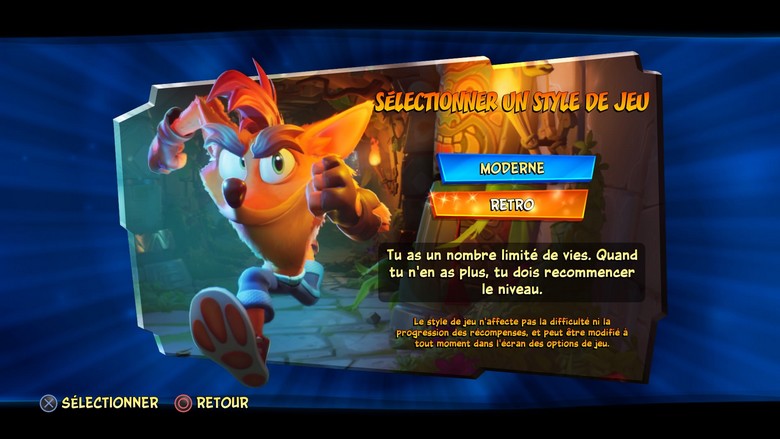 Côté difficulté, bien que la série soit connue pour ses niveaux exigeants (mais pas insurmontables), Crash Bandicoot 4 : It’s About Time se révèle bien plus corsé que ses prédécesseurs. Les vies défilent donc au rythme de vos morts (logique) dans chacun des niveaux qui se succèderont jusqu’à atteindre la fin du titre. Malheureusement, les morts ne sont pas toutes dues à la seule difficulté. Il est encore délicat de prévoir l’endroit de réception après un saut (malgré ce nouvel outil tant attendu qui aide quand même un peu). De plus, la maniabilité sur surface glissante se révèle frustrante et certains ennemis ne disposent pas toujours de points faibles immédiatement identifiables, entrainant donc des morts (encore)… Mais là où j’ai vraiment eu le plus de complications, c’est lorsqu’il a fallu manier la “super-toupie” accordée par ‘Akano (le masque violet de la matière noire)... Et pourtant, force est de constater que la machine prend encore : on reste scotché à sa manette et on recommence, inlassablement.