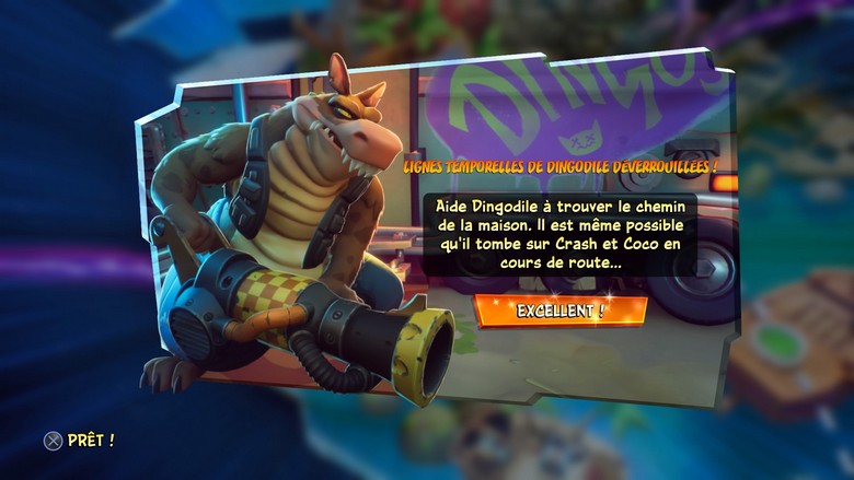 Les autres personnages ont des niveaux qui leur sont propres, agréables à parcourir mais pas des plus inventifs (et, il faut l’avouer, beaucoup moins amusants que ceux de Crash/Coco). Fort heureusement, ces mondes “Timelines” mettant en scène des personnages annexes font figure de bonus et sont totalement facultatifs (vous n’êtes pas obligé de les réaliser pour arriver au stage final).