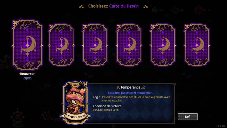 Tous les 3 niveaux : une salle de défi. Vous piochez d’abord une carte de tarot au hasard, puis retournez les cartes de destin, ce qui ajoute des éléments positifs ou négatifs au défi. En réussissant ce défi, vous gagnez de nombreux œufs différents et une carte de tarot. Comme pour les œufs, une carte peut être activée ou dévorée.